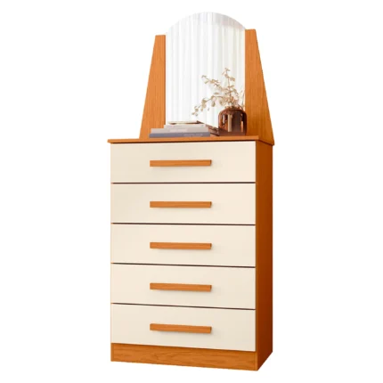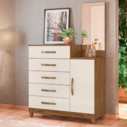 Cômoda 5 Gavetas com Espelho New Veneza Albatroz – Cinamomo/OffWhite