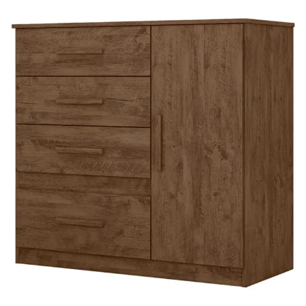 Cômoda 1 Porta Bater 4 Gavetas com Corrediças Metálicas Vênus Moval – Castanho