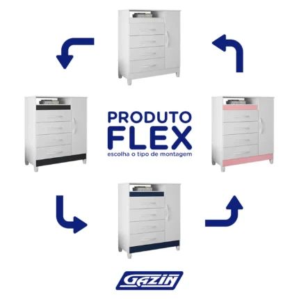 2 es Cômoda 1 Porta Bater 4 Gavetas MDP e MDF Turqueza Albatroz - Flex Cód.