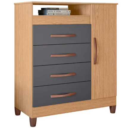 Cômoda 1 Porta Bater 4 Gavetas Turquesa Albatroz – Freijo/Titanium