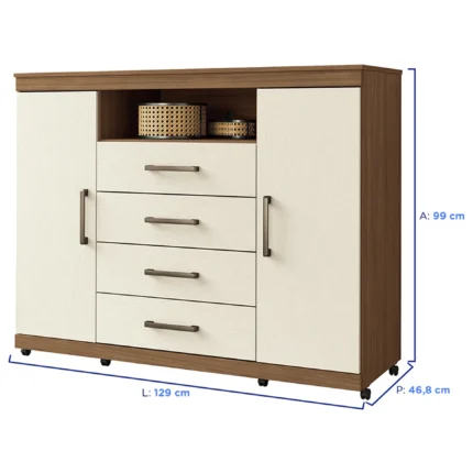 3 es Cômoda 2 Portas Bater 4 Gavetas com Rodízios Master Santos Andirá - Jatobá/Areia Cód.