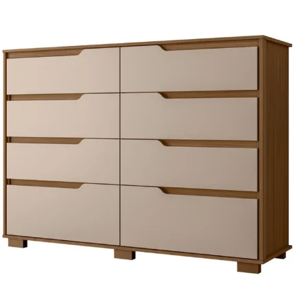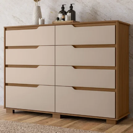 Cômoda 8 Gavetas MDP Corrediças Telescópicas Georgia Moval – Carvalho/Fendi