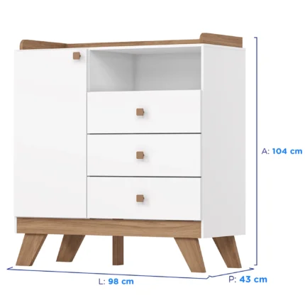 Cômoda Infantil 1 Portas Bater 3 Gavetas Confete Henn – Branco/Jequitiba HP