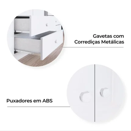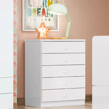 Cômoda Infantil 5 Gavetas MDP com Puxadores ABS Bala de Menta Henn – Branco