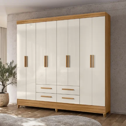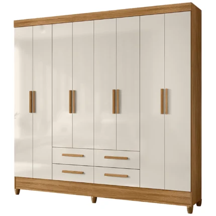 Guarda-Roupa Casal 8 Portas 4 Gavetas B51 Briz Henn Roupeiro – Cinamomo/ Off white