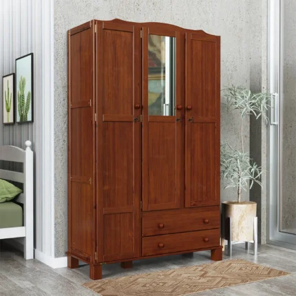Guarda-Roupa Solteiro 3 Portas Bater 2 Gavetas Clean Serpil Roupeiro – Nogal Acetinado