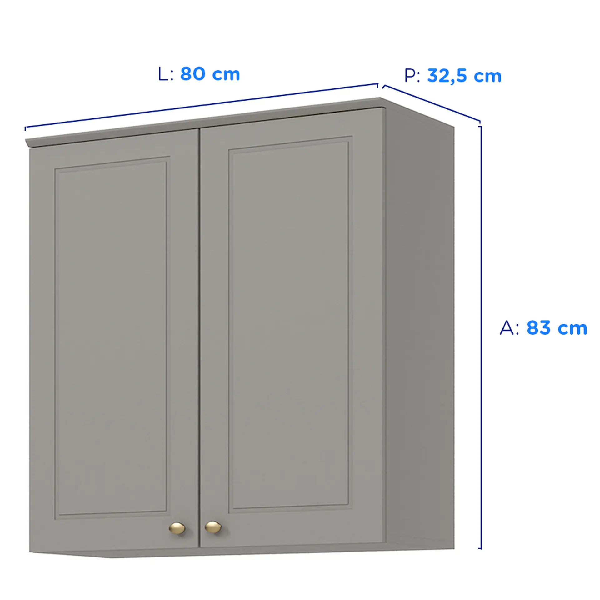 Armário Aéreo 80cm 2 Portas MDF Americana Henn – Cinza