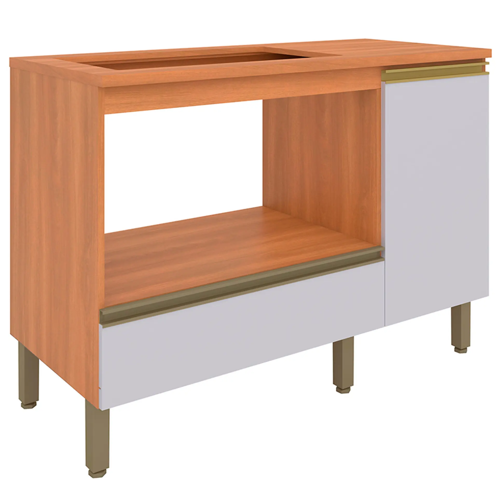 Balcão para Cooktop 1 Porta 1 Gaveta Macadamia Telasul – Freijo/Branco