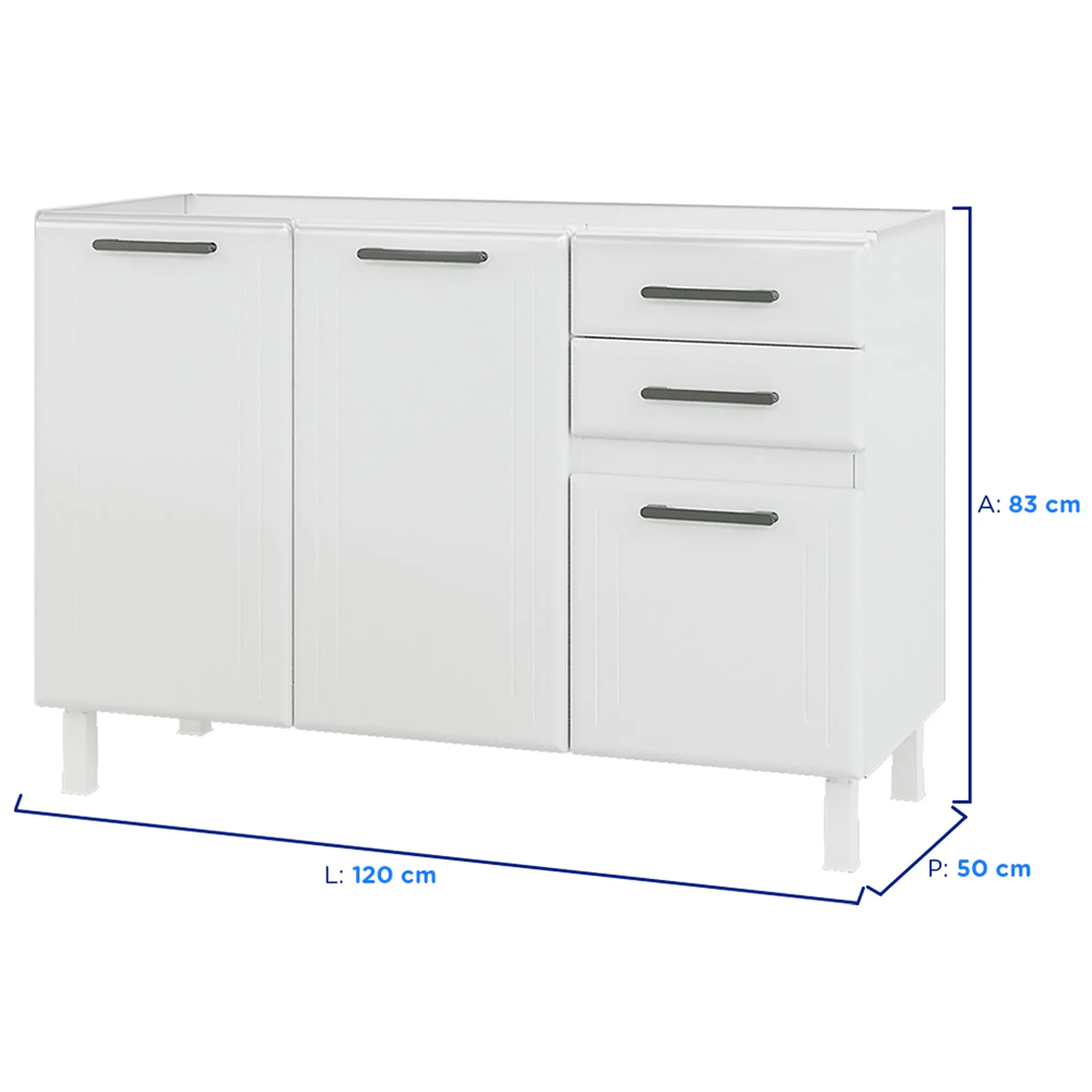 Início Produtos Balcão sem Tampo 2 Portas 3 Gavetas 120cm Liz Telasul em Aço – Branco