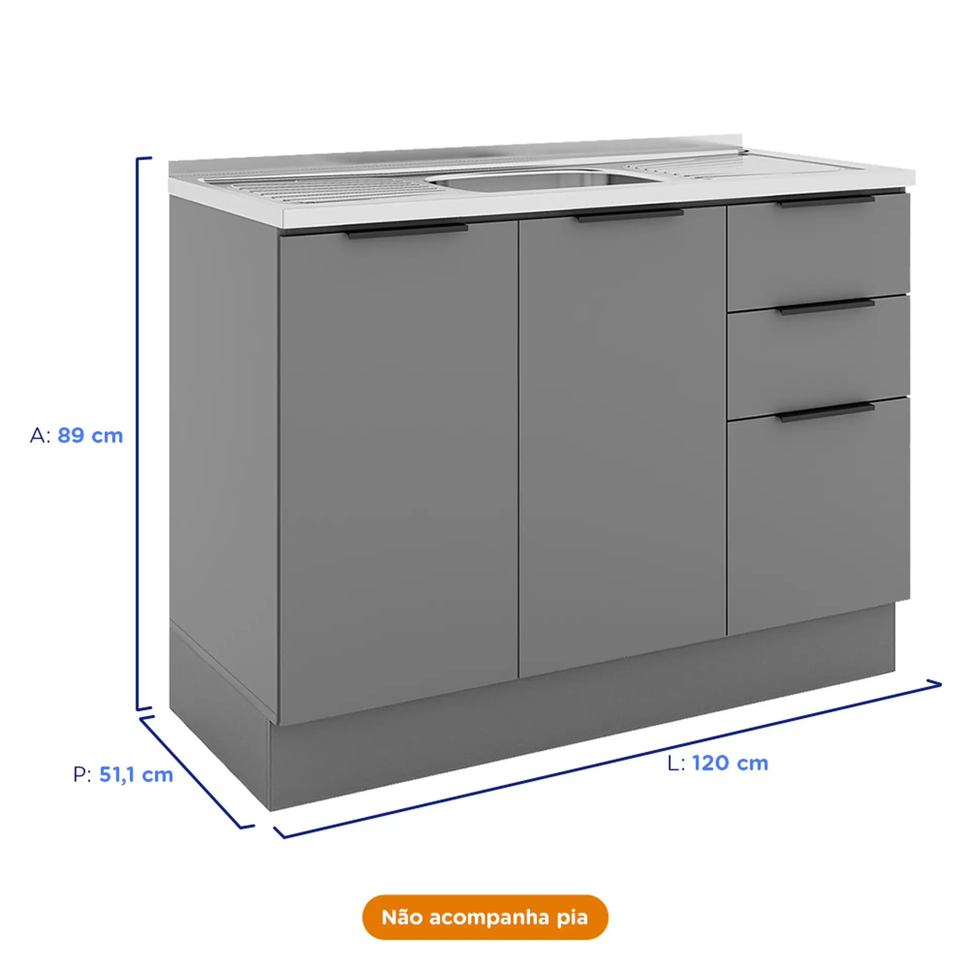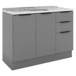 Balcão sem Tampo 2 Portas 3 Gavetas 120cm MDP MDF Lumina Telasul – Cinza