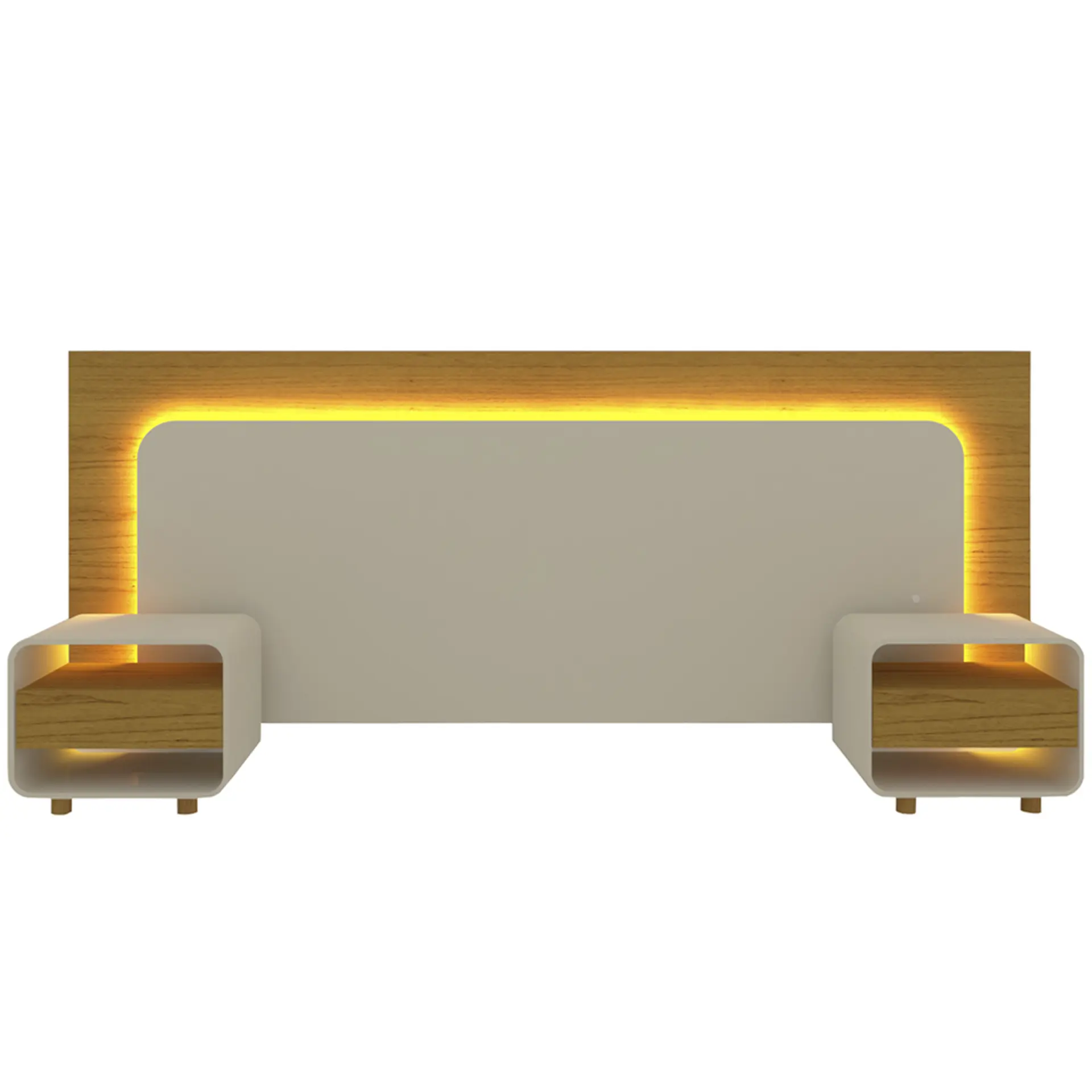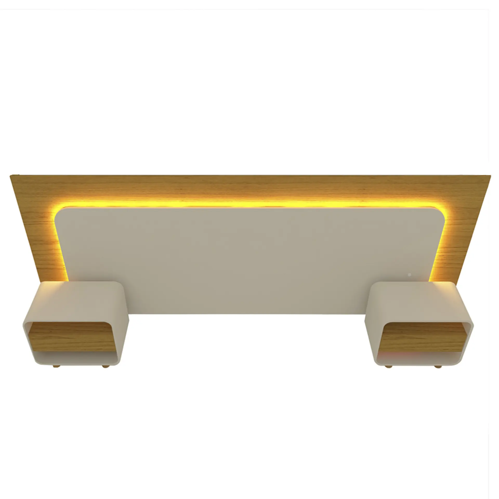 Cabeceira Casal Extensível até 195cm Com Mesa De Cabeceira Innova Gelius – Naturale/Off White