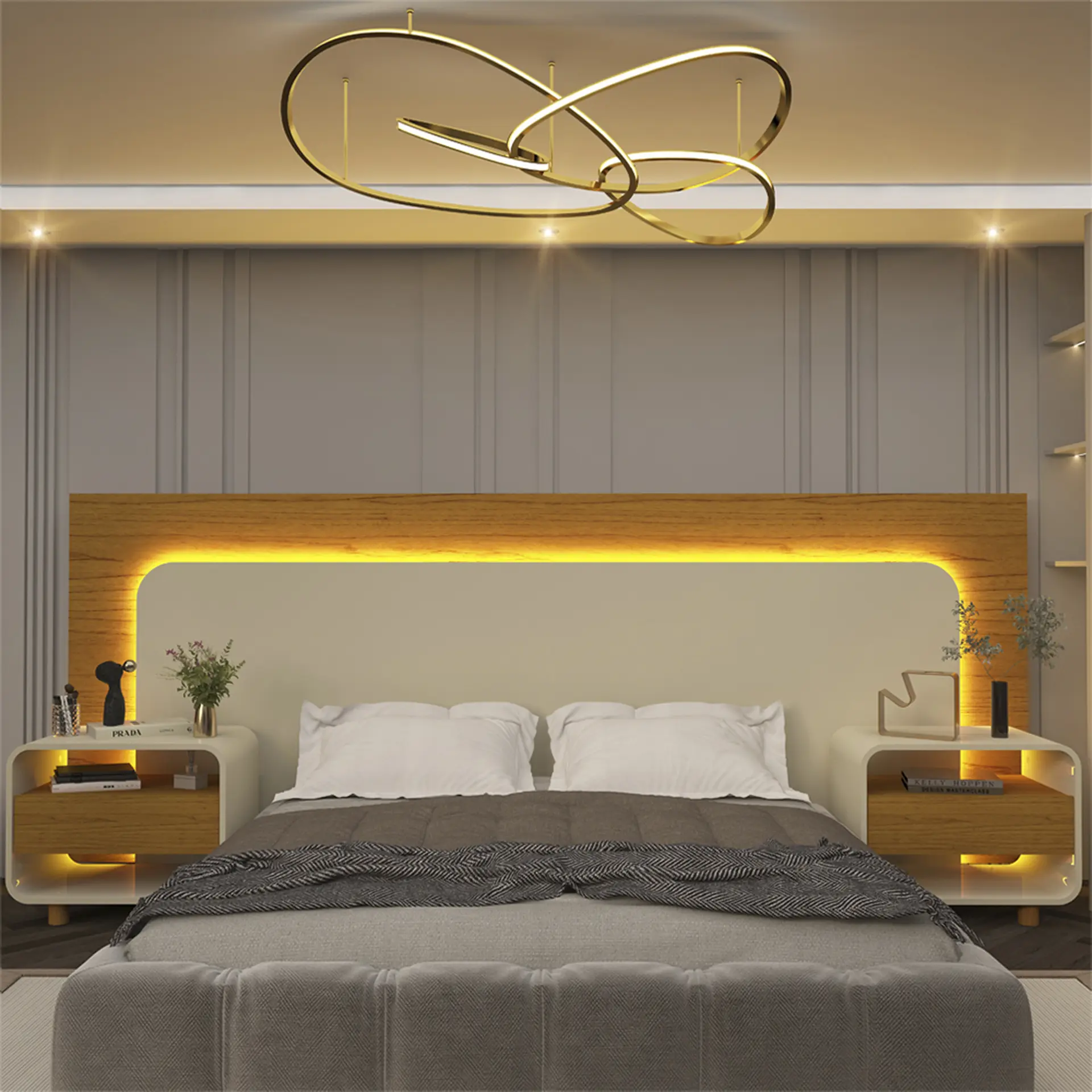 Cabeceira Casal Extensível até 195cm Com Mesa De Cabeceira Innova Gelius Eleve o design do seu quarto com a . Seu design curvo e a iluminação LED em tom quente proporcionam um ambiente moderno, elegante e aconchegante. Além disso, sua estrutura extensível permite adaptação para diferentes tamanhos de cama. Confira mais detalhes: Design sofisticado e iluminação aconchegante Com um design curvo e iluminação LED em quente, essa cabeceira proporciona um toque de modernidade e tranquilidade, tornando seu espaço mais aconchegante para momentos de descanso. Organização e Funcionalidade Com duas mesas de cabeceira flutuantes, você ganha espaço extra e um visual moderno. As gavetas com bordas chanfradas e laqueadas garantem um acabamento refinado e facilitam a organização. Versatilidade para Seu Espaço Seu sistema extensível permite ajuste para camas de Casal (140 cm), Queen (160 cm) e King (195 cm), adaptando-se perfeitamente ao seu quarto.Sobre a marca: Gelius! Em 1984, situada na cidade de Mirassol, interior de SP, a Gelius foi fundada pela família Gelio e administrada pelo Alcidis Gelio. Desde de uma oficina de carroceria, passando a um espírito de empreendedor e investindo forte na produção de móveis, essa empresa cresceu e vem crescendo muito. Hoje, com 34 anos de história, é referência nacional, produzindo diversos tipos de produtos. Apresentando 350 colaboradores, que produzem cerca de 60.000 peças por mês e conta com 4.000 clientes ativos. Preparada para atender um mercado mais exigente, a Gelius vem sempre buscando soluções inteligentes para fazer sua família feliz.