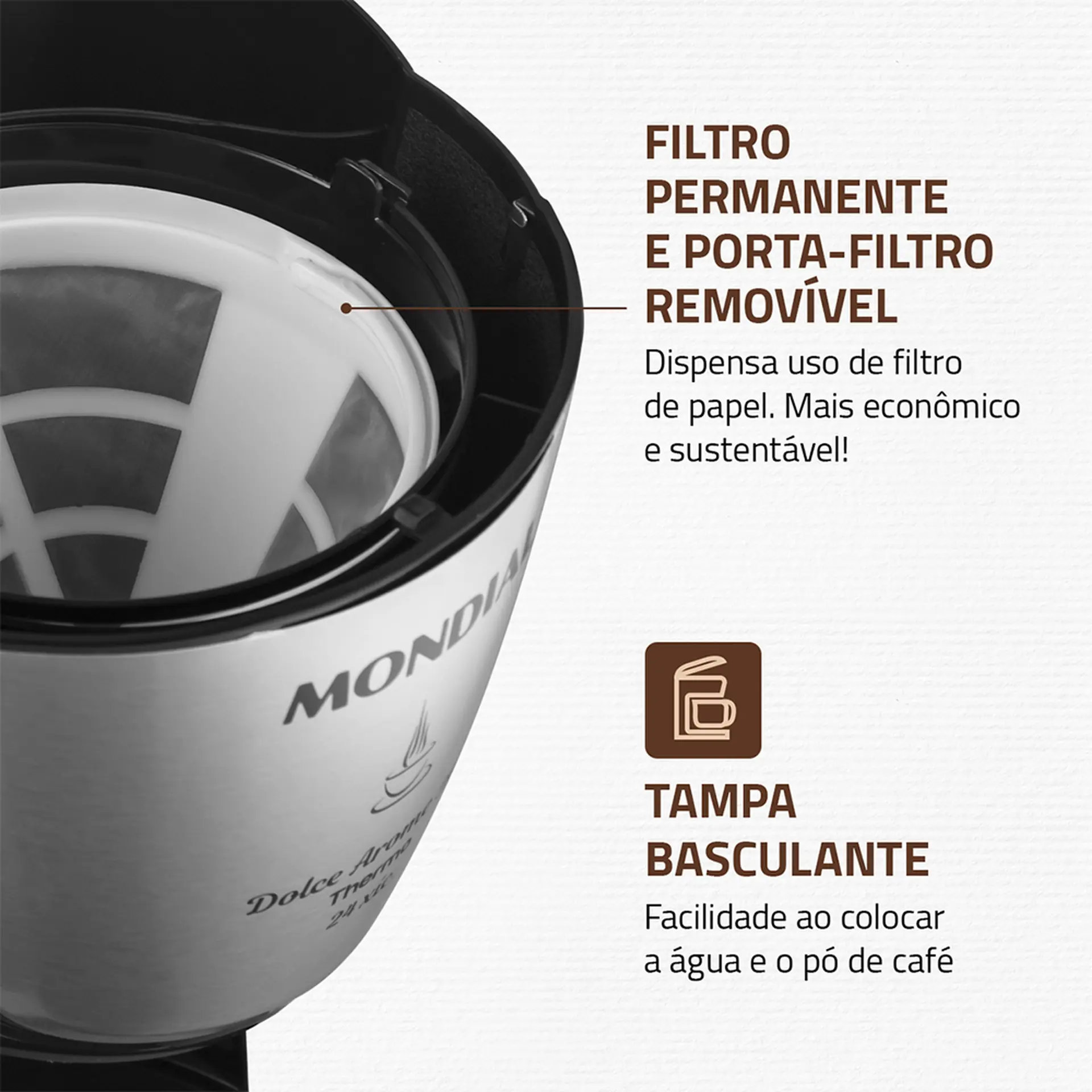 Adeus, dor de cabeça com filtro de papel. Basta remover o porta-filtro para lavar e reutilizar! Tem mais, a