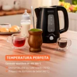 Um dos grandes diferenciais dessa chaleira é o seu seletor de temperatura, que permite o ajuste manual de até 100 °C de maneira muito simples. Essa precisão é fundamental para extrair o melhor sabor de chás e cafés coados, que exigem cerca de 70 °C, além de possuir uma configuração específica de 40 °C, ideal para o preparo cuidadoso de fórmulas infantis. O sistema de aquecimento é rápido e potente, operando com 1200W na versão de 127V ou 1850W na opção de , o que garante que a água atinja o ponto de fervura em poucos minutos.