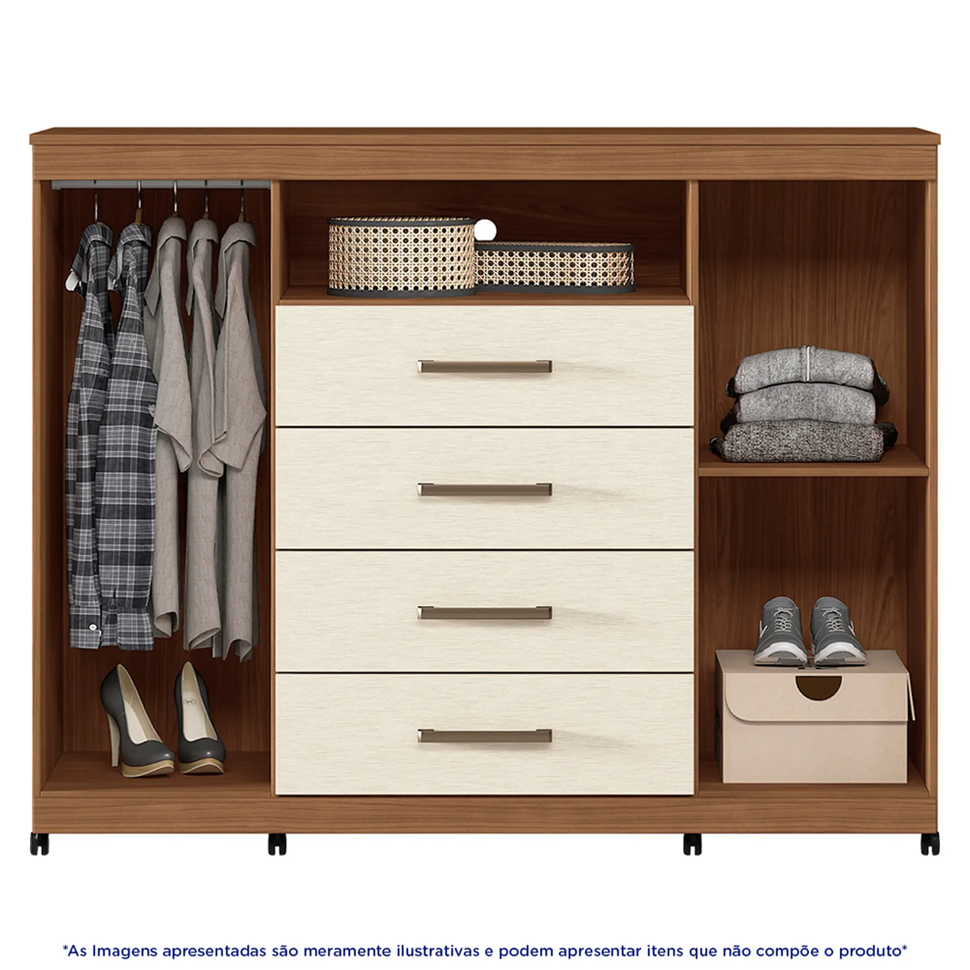 Cômoda 2 Portas Bater 4 Gavetas com Rodízios Master Santos Andirá – Jatobá/Areia