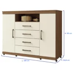CÔMODA 2 PORTAS BATER 4 GAVETAS COM RODÍZIOS MASTER SANTOS ANDIRÁ