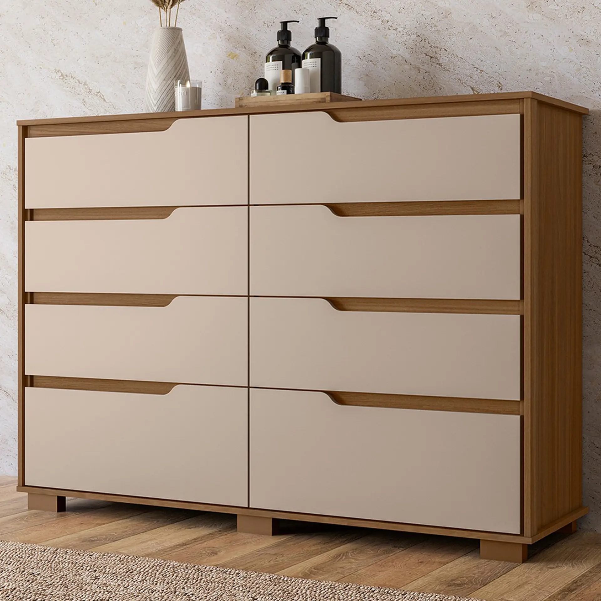 Cômoda 8 Gavetas MDP rediças Telescópicas Georgia Moval – Carvalho/Fendi