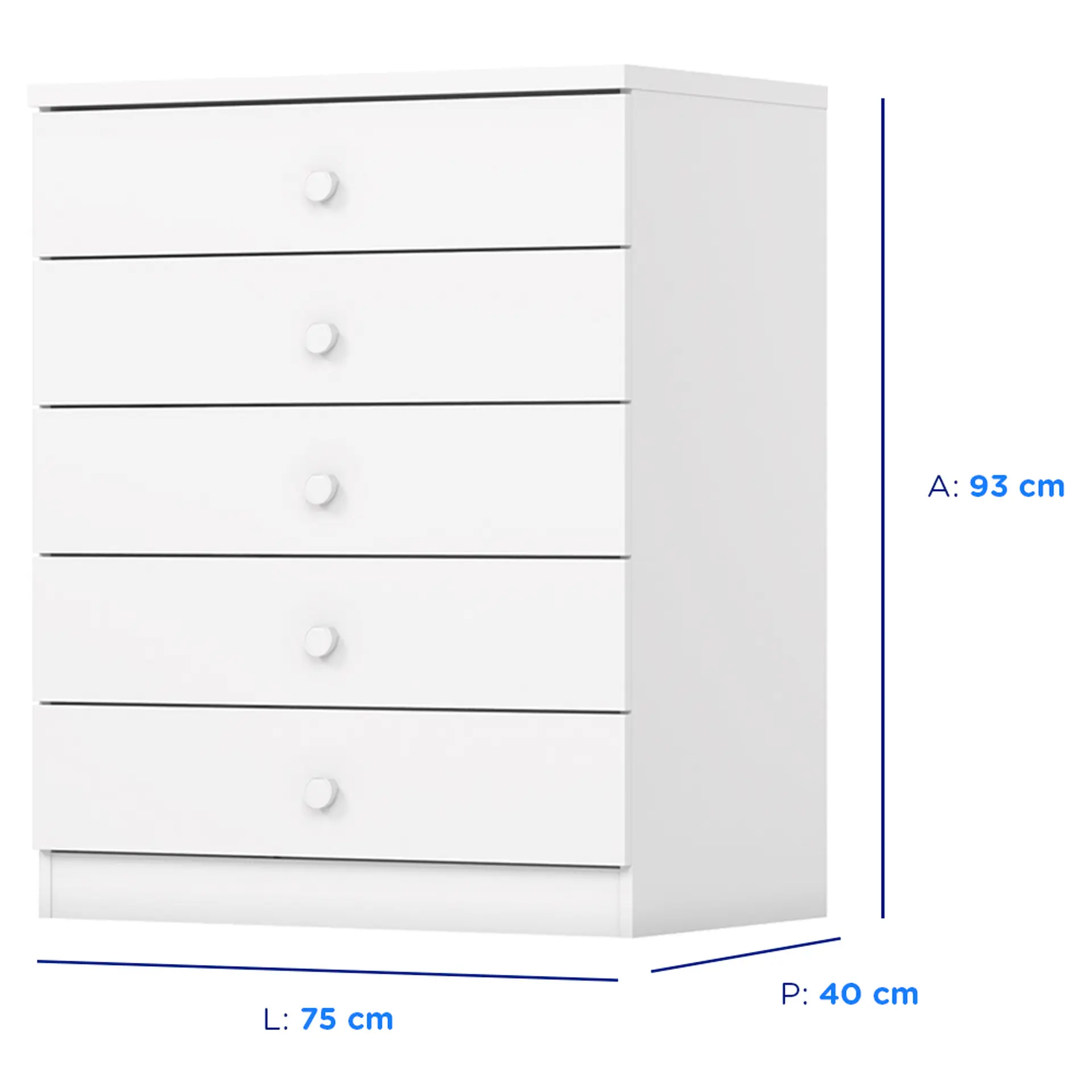 Cômoda Infantil 5 Gavetas MDP com Puxadores ABS Bala de Menta Henn – Branco