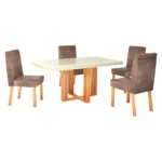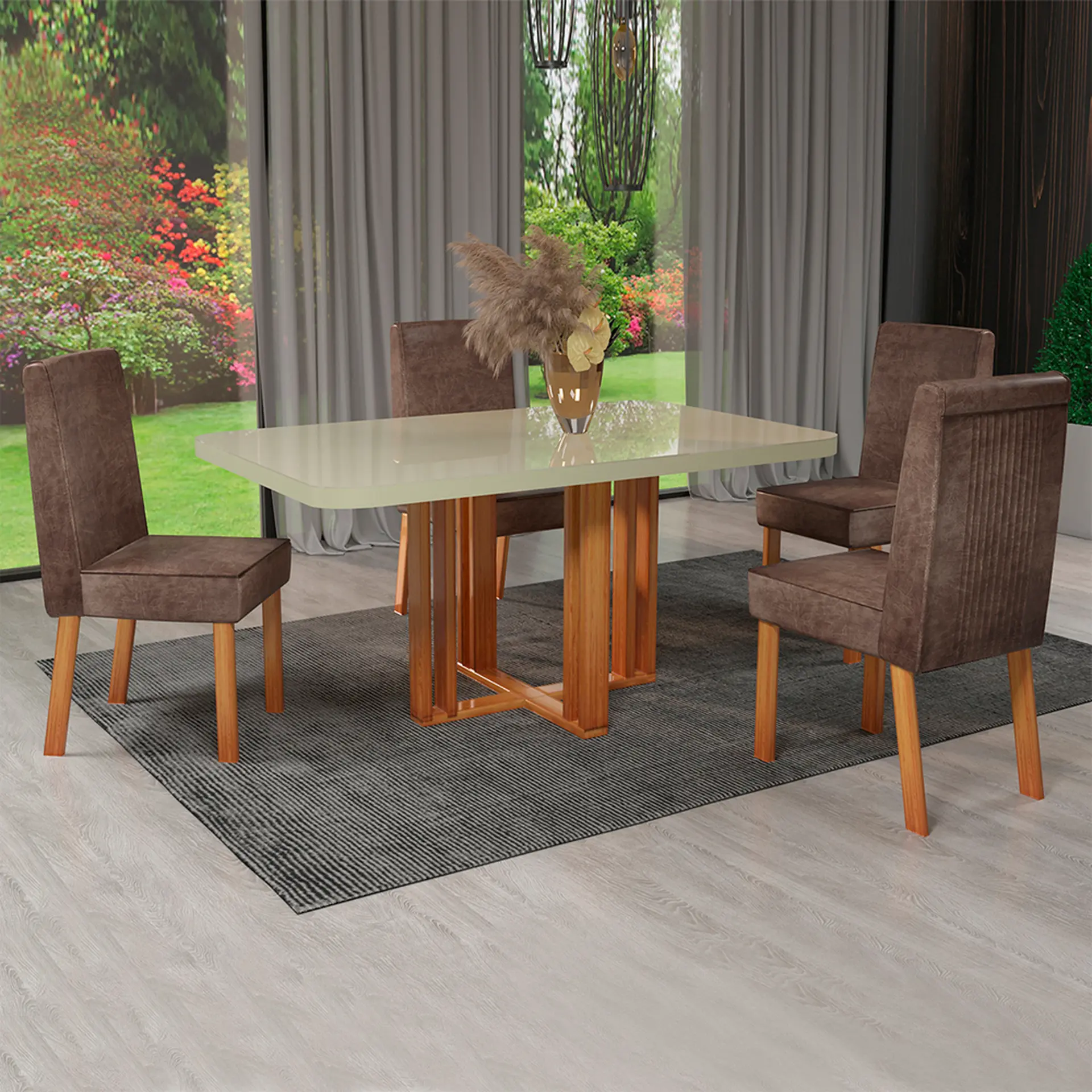 Conjunto de Mesa 4 Cadeiras Tampo MDF e Vidro Ghaia Bom Pastor – Naturale Off