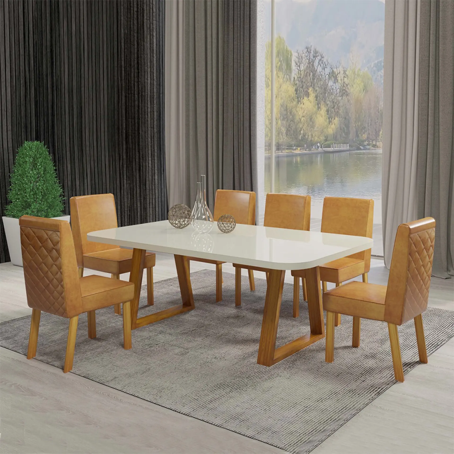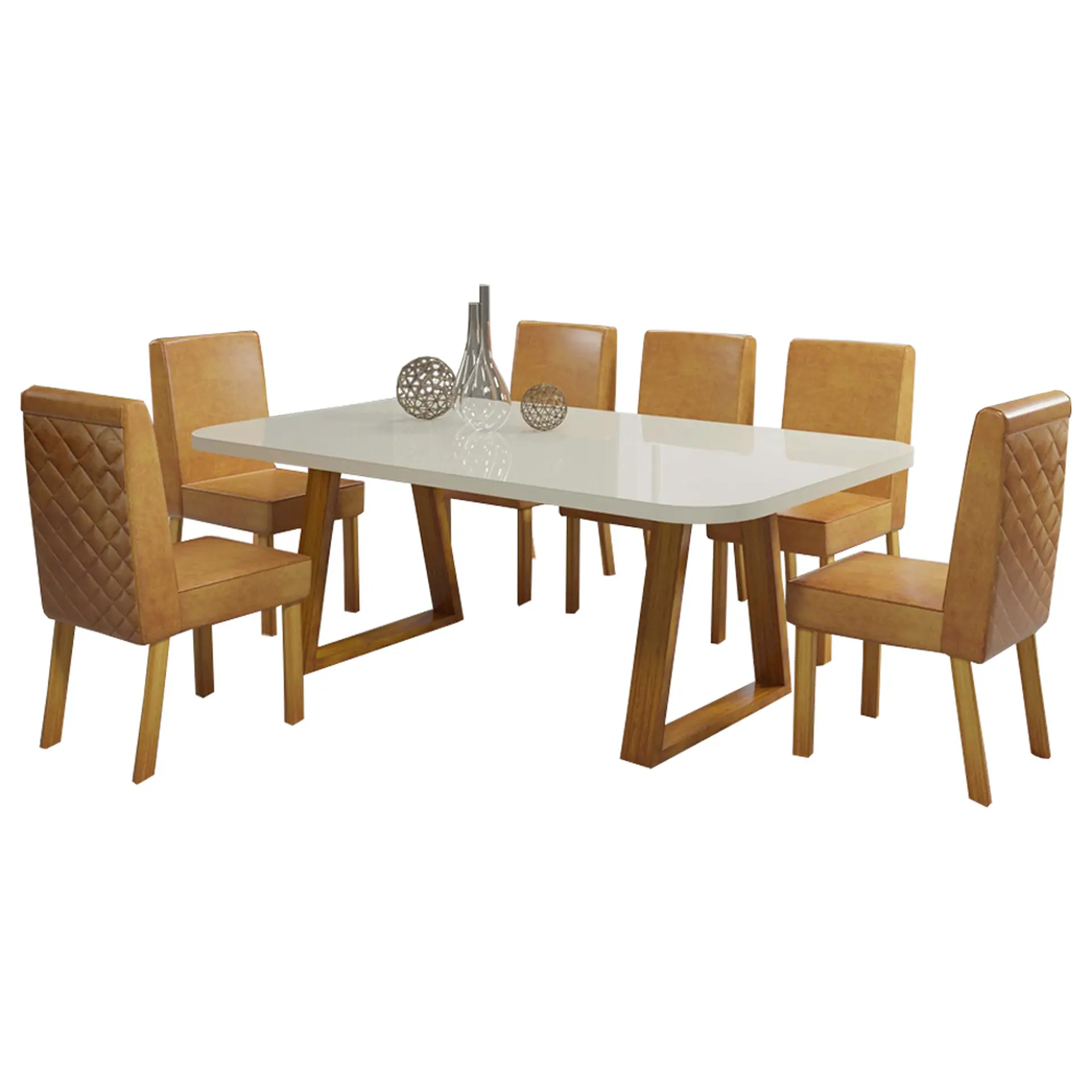 Conjunto de Mesa 6 Cadeira Tampo com Vidro Sofistic Bom Pastor – Naturale Off