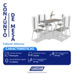 3 es Conjunto de Mesa 6 Cadeiras Tampo Granito Athenas Fabone – Branco Prata/ Vegetale Cód.