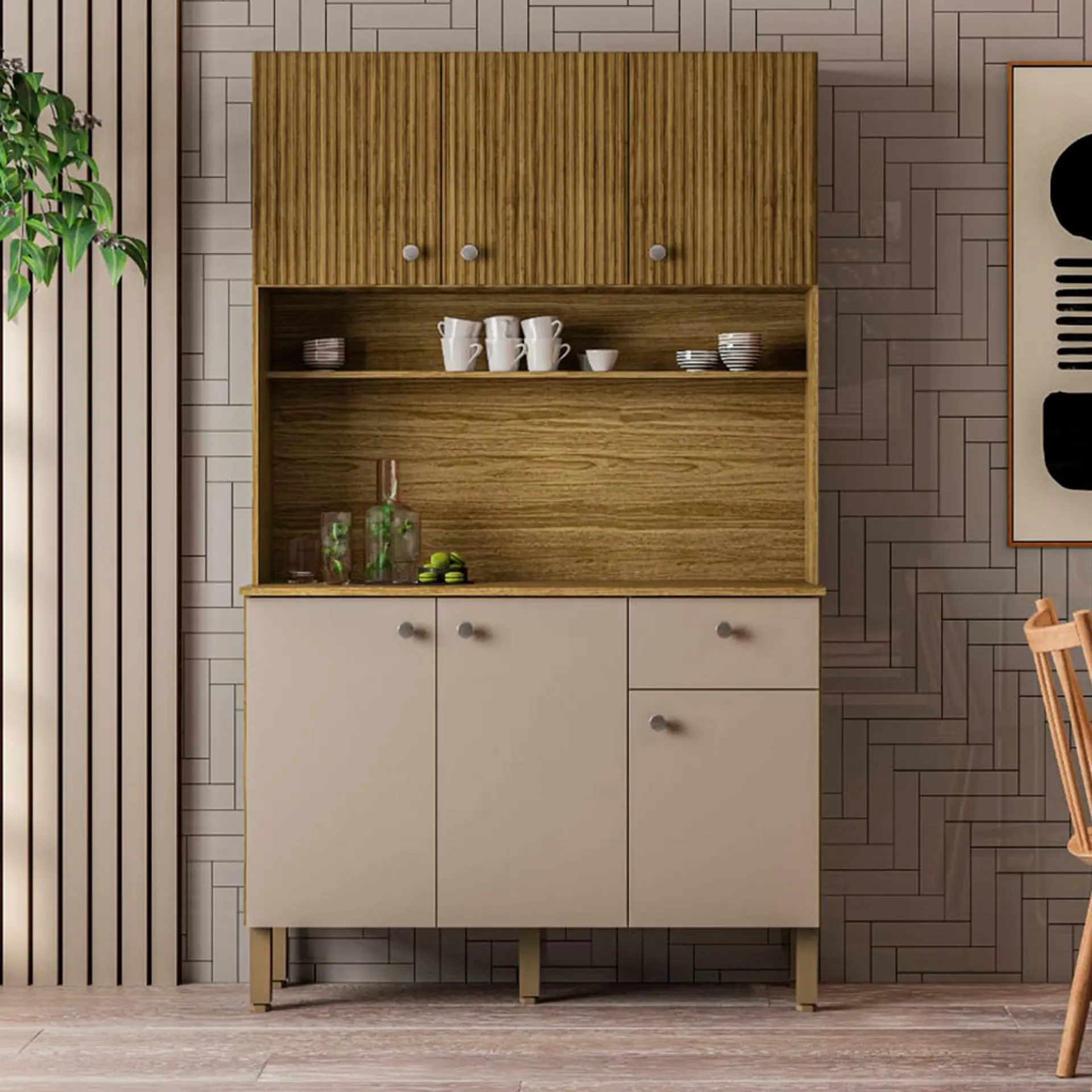 Cozinha Compacta 6 Portas 1 Gaveta Style Kit’s Paraná – Freijo Vanilla