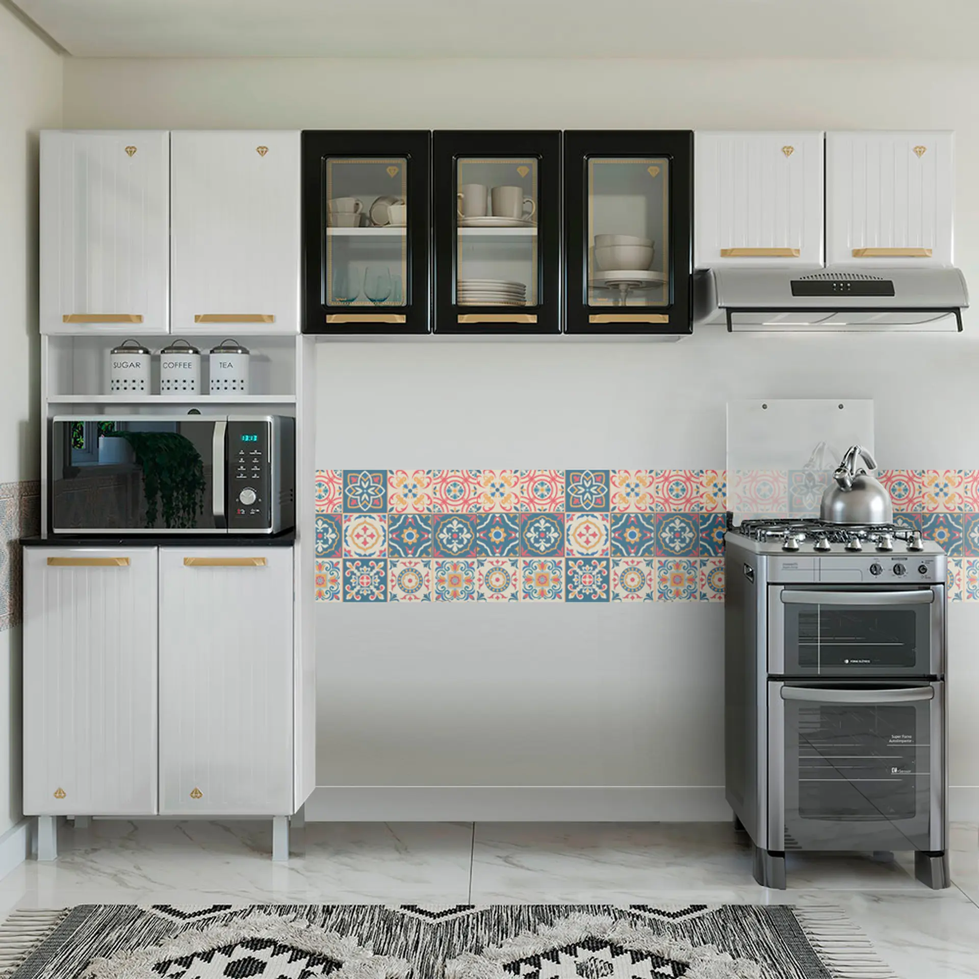 Cozinha Modulada 3 Peças 9 Portas Aço Diamante Telasul – Branco/Preto