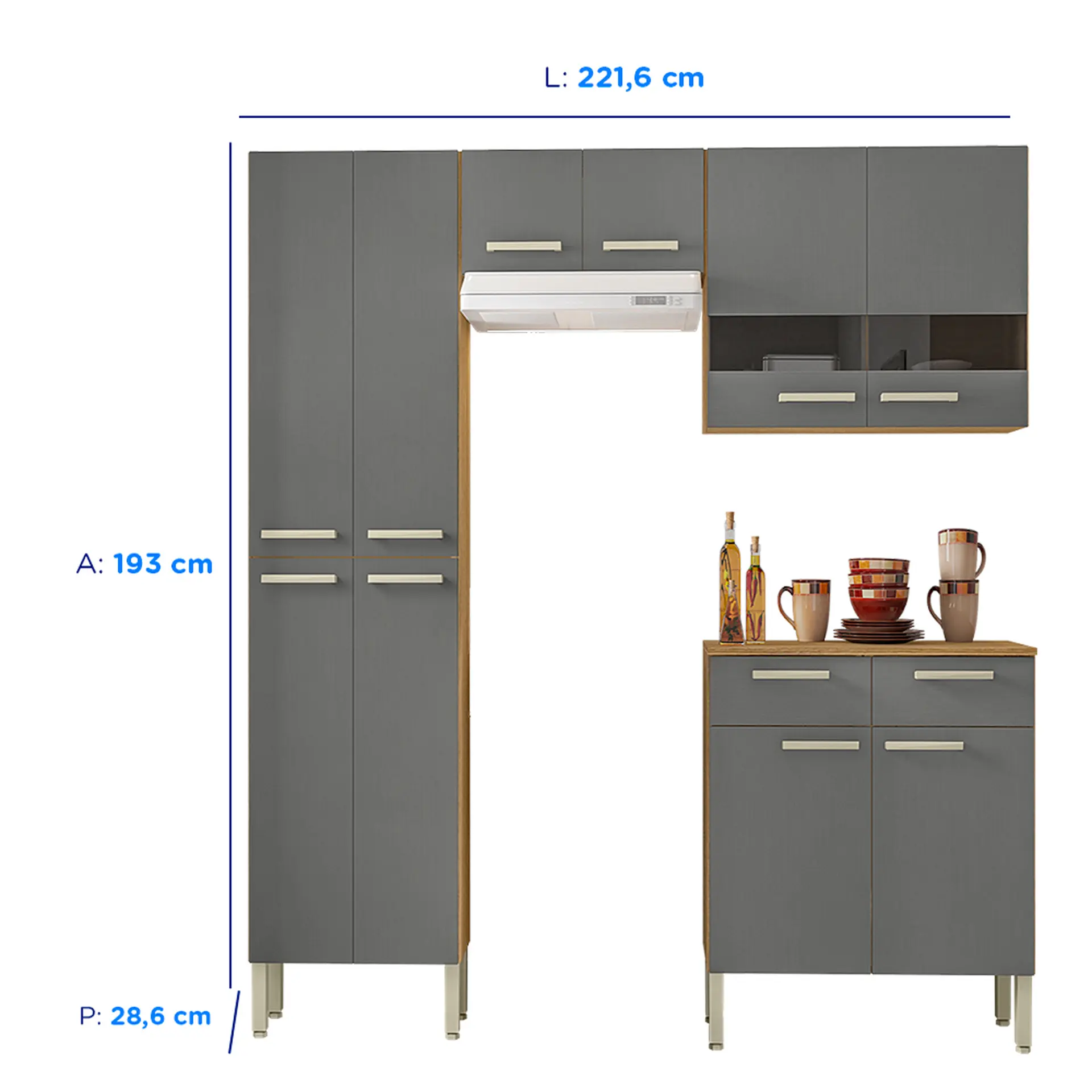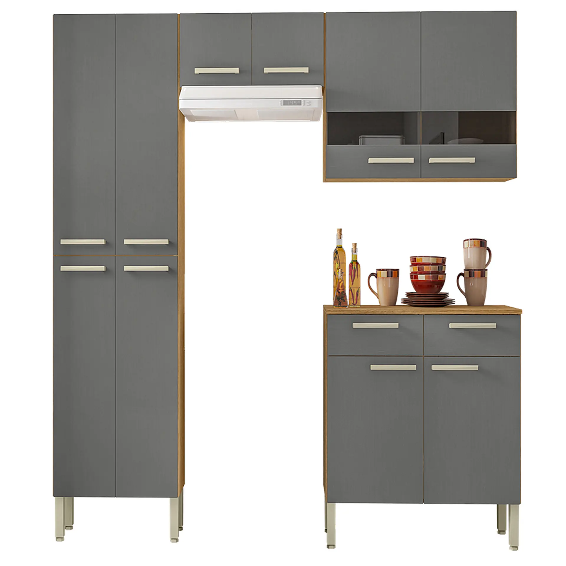 Cozinha Modulada com Balcão 4 Peças 10 Portas em MDP Nala Kit’s Paraná – Freijo gris