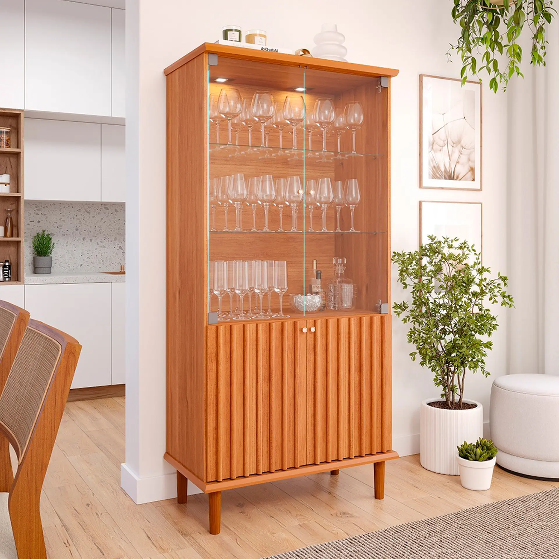 Cristaleira 4 Portas 2 Prateleiras Luiza Cimol com LED – Cinamomo