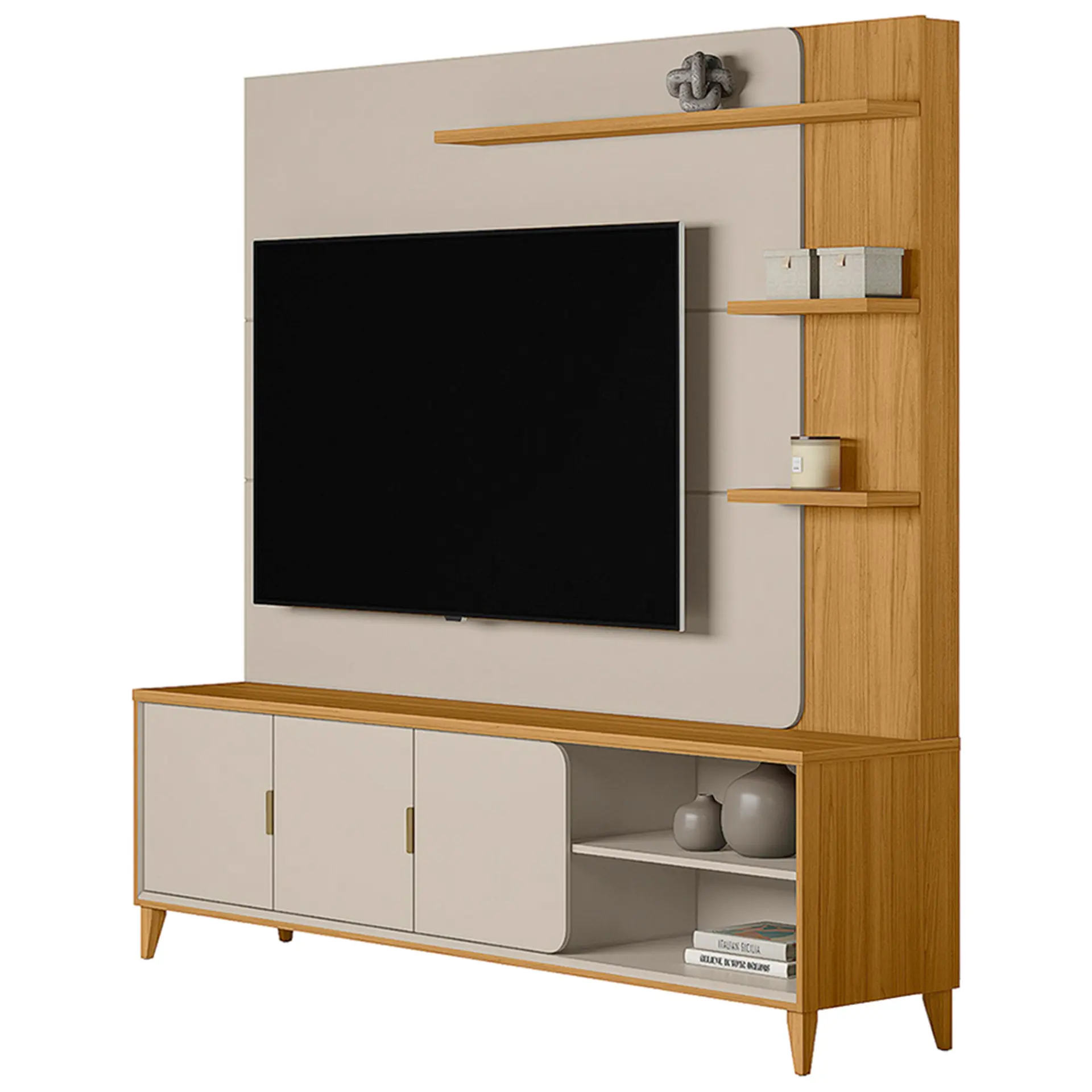 Estante Home para TV até 70″ 3 Portas MDP MDF Napoli Linea Brasil – Tauari/Off White Fosco Cód.