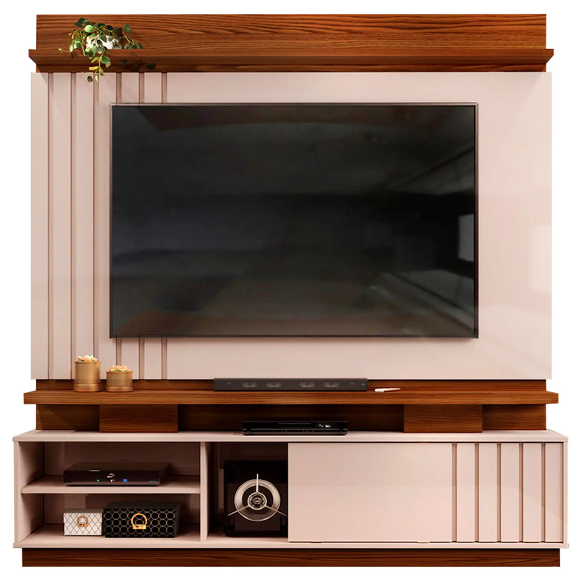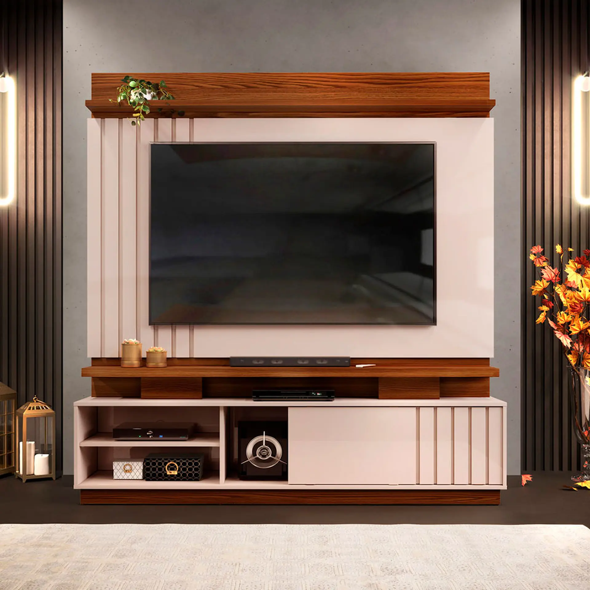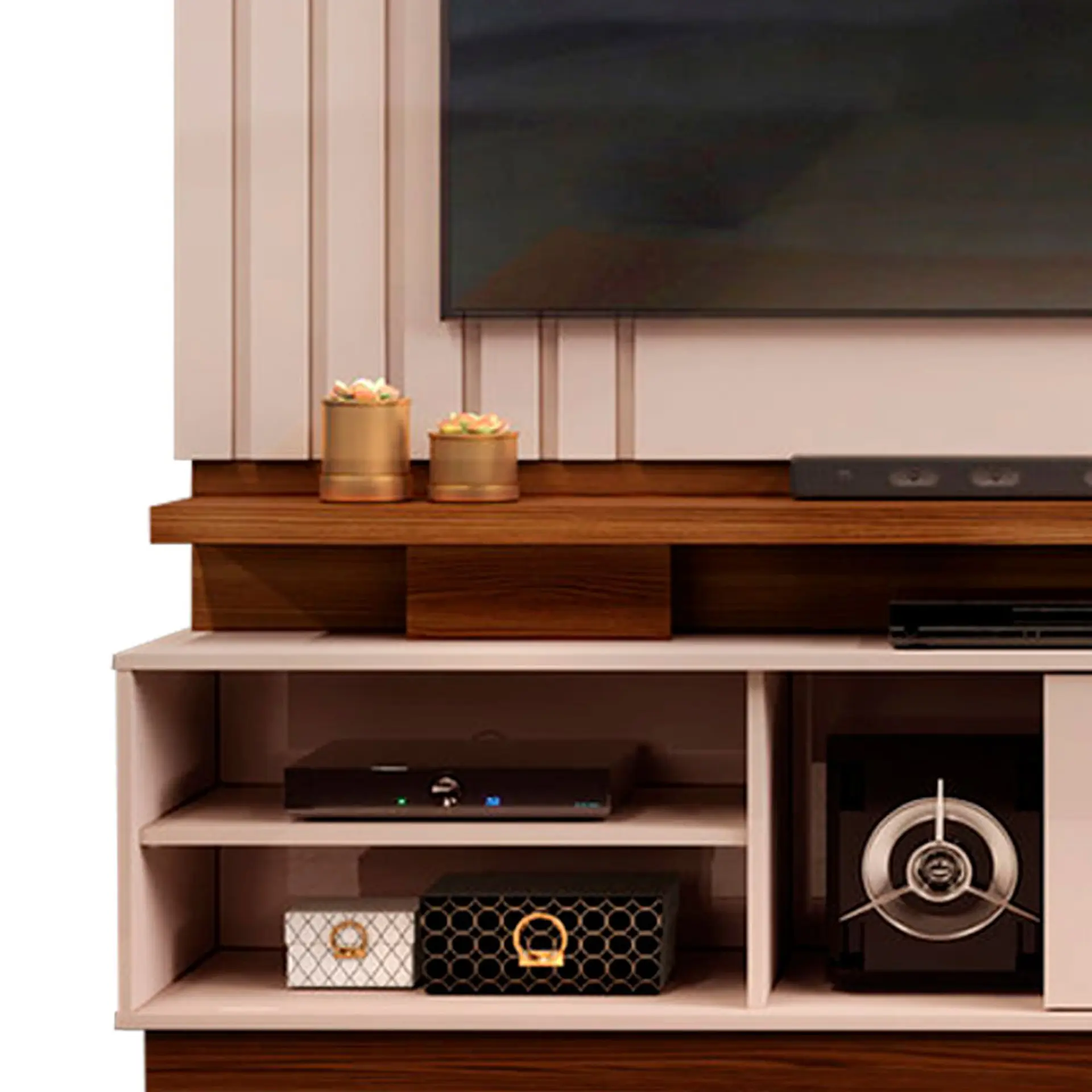 Estante Home para TV até 70″ MDP e MDF 1 Porta Detroit DJ Móveis – Marroquim/Off White Cód.