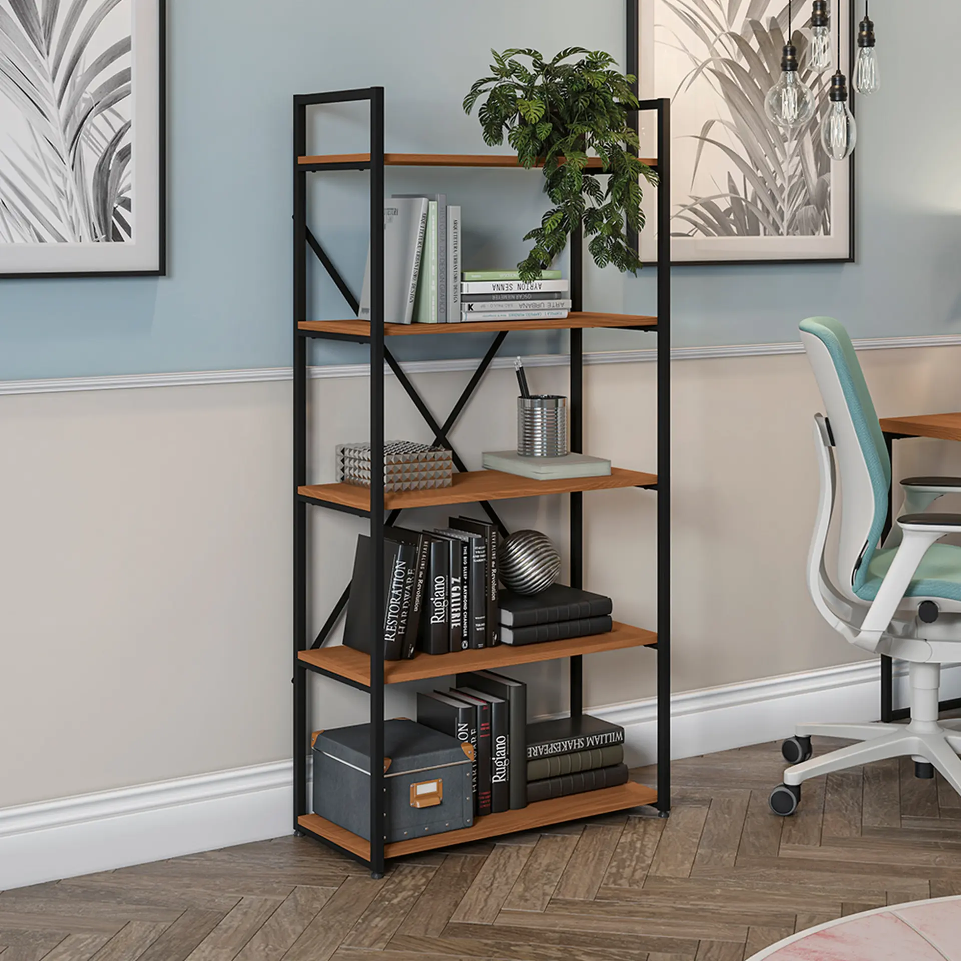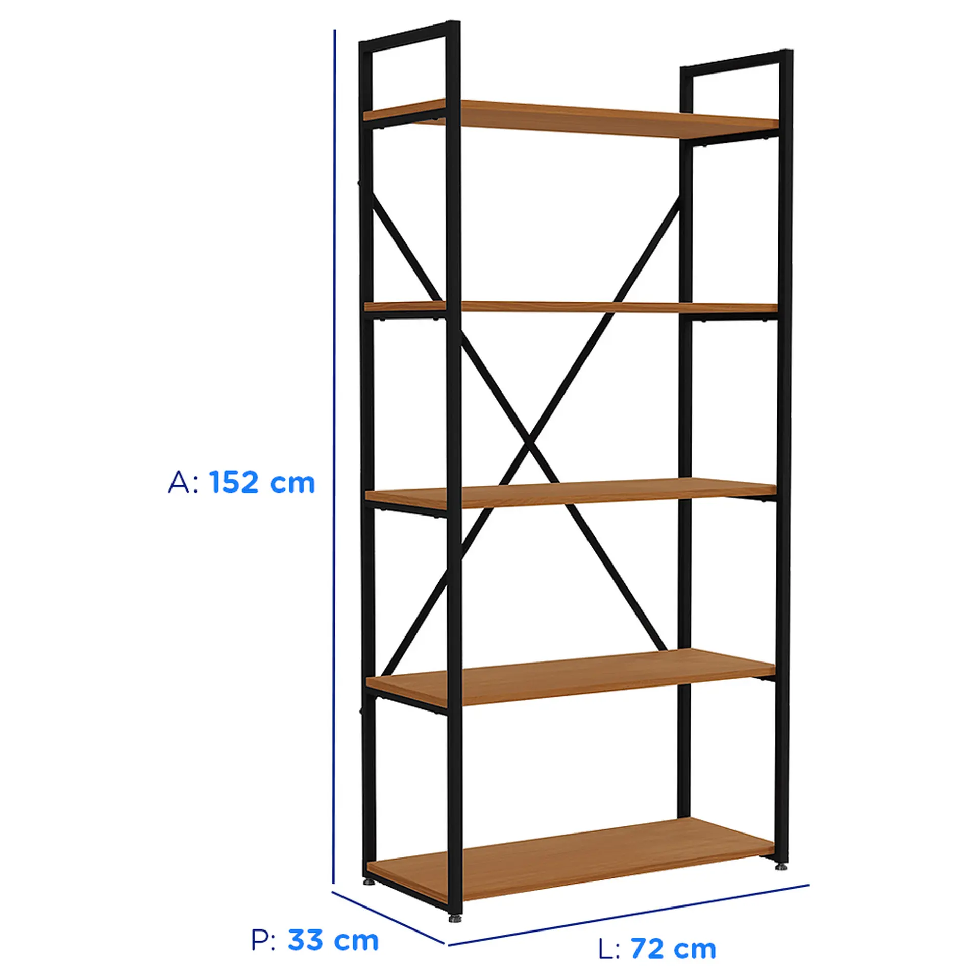 Estante Multiuso 5 Prateleiras Kappesberg – Preto Fosco/Canela