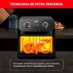 elimina a necessidade de óleo, tornando os alimentos mais saudáveis sem comprometer o sabor e a textura. A tecnologia de circulação de ar