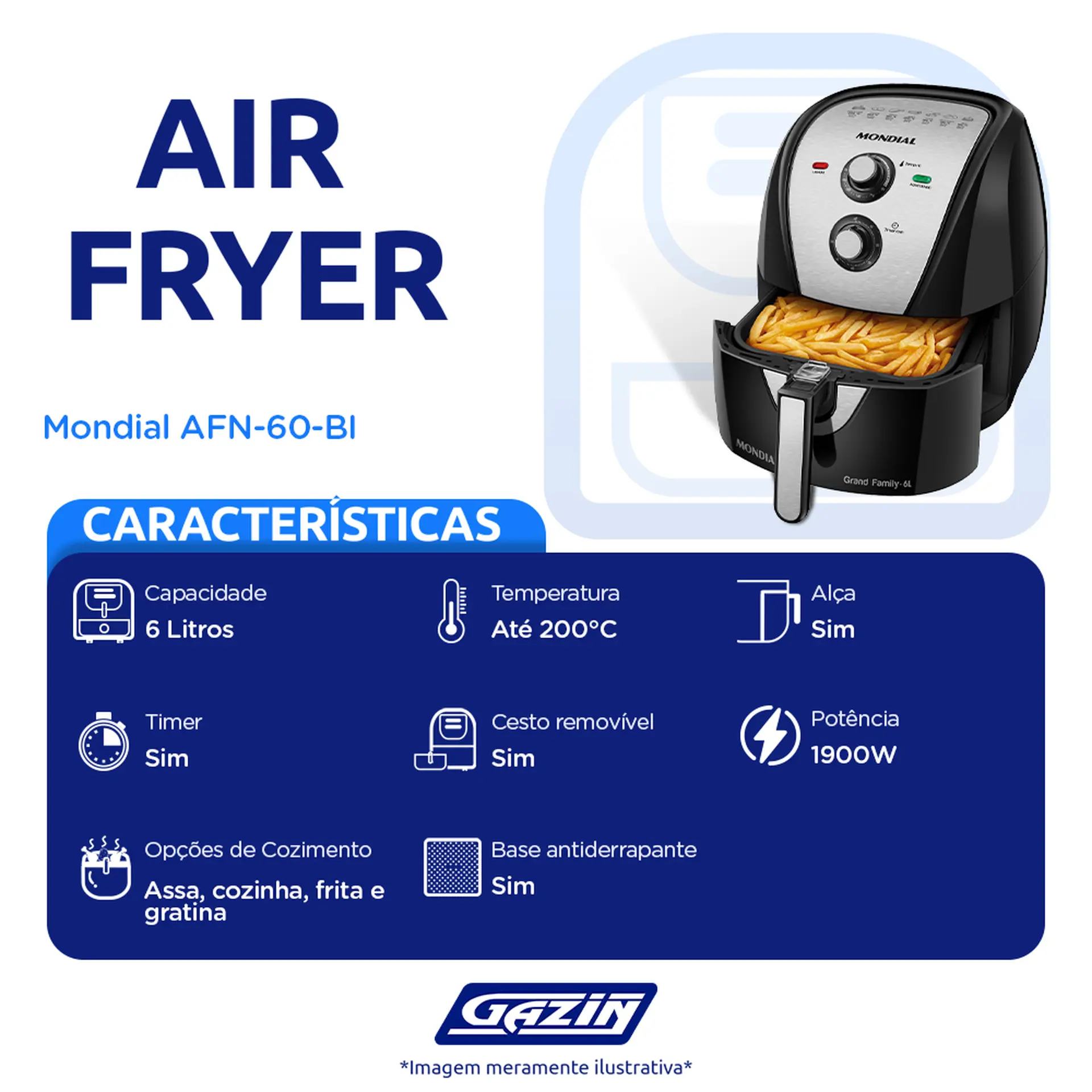 FRITADEIRA ELÉTRICA AIR FRYER MONDIAL AFN-60-BI 6L 1900W