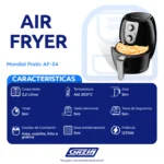 Fritadeira Elétrica Air Fryer Mondial Pratic AF-34 3,2L 1200W com Timer – Preto – 220 Volts
