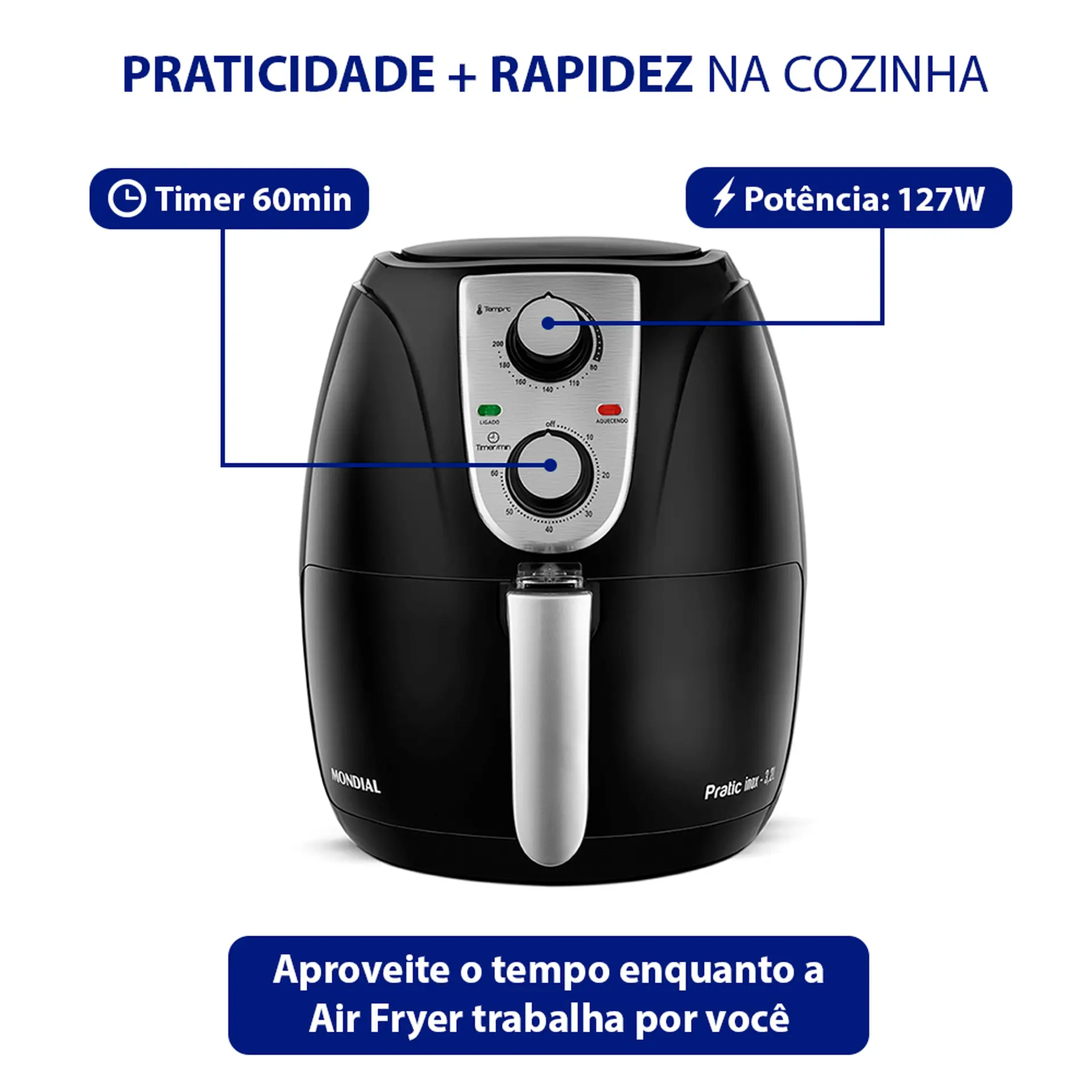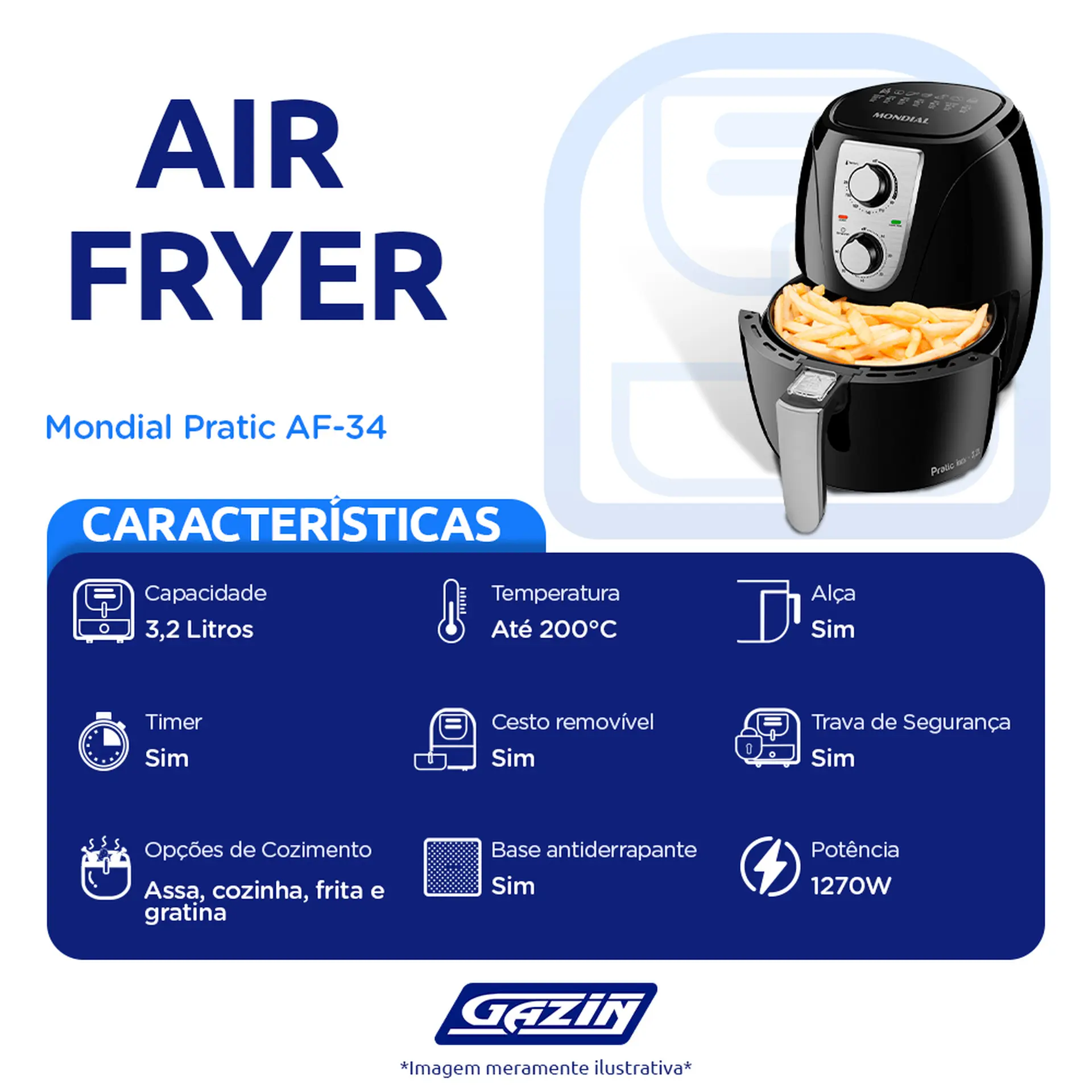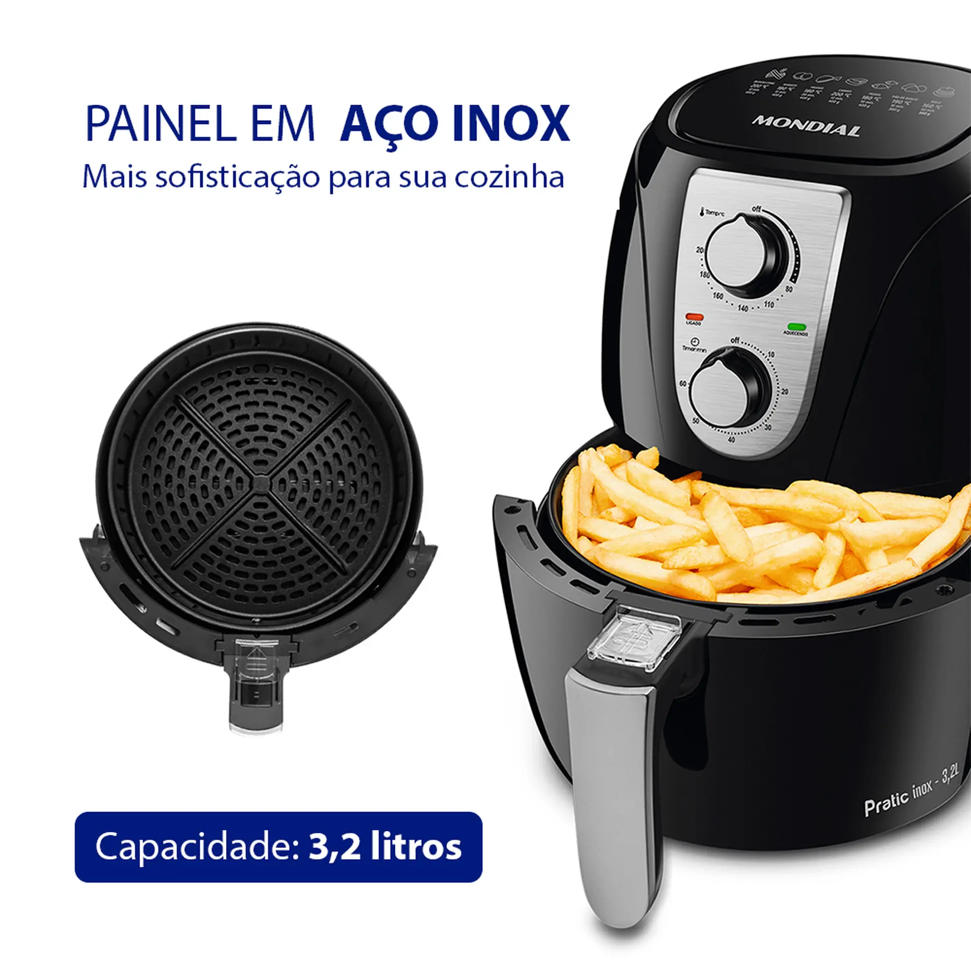 FRITADEIRA ELÉTRICA AIR FRYER MONDIAL PRATIC AF-34 3,2L 1200W COM TIMER