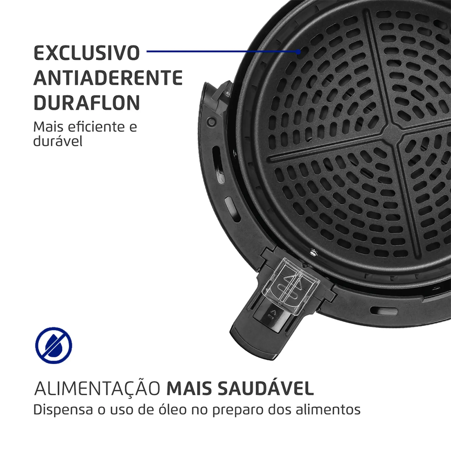 , um material antiaderente de alta performance que impede que os ingredientes fiquem grudados na superfície. Além disso, a manutenção e limpeza são simplificadas, pois tanto a cuba quanto o cesto podem ser removidos com facilidade, garantindo uma