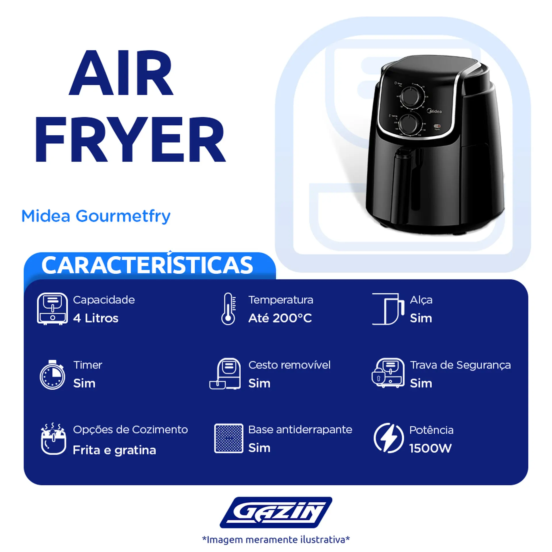 Fritadeira Elétrica Midea Air Fryer Gourmetfry FRB45P 4L 1500W Timer