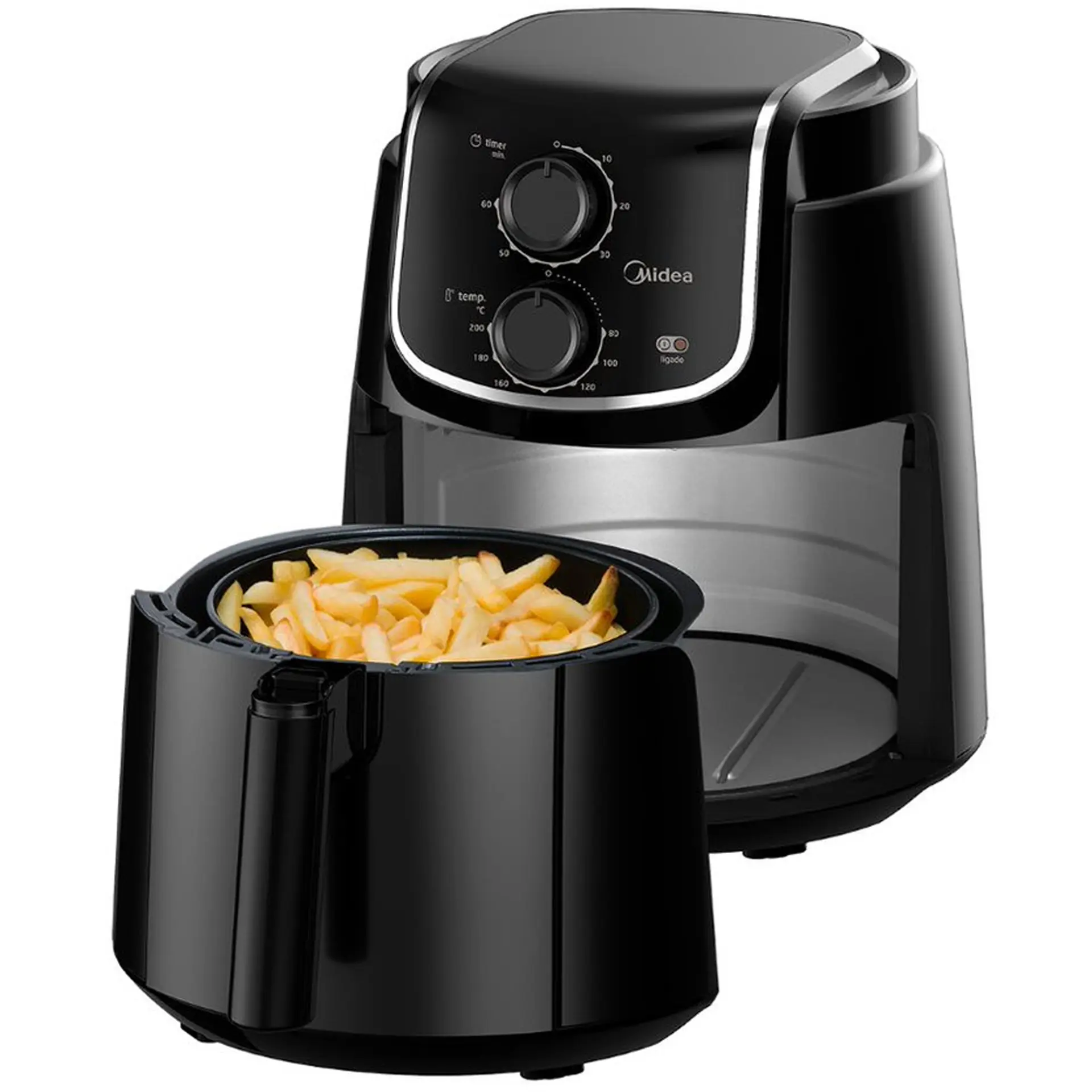 Início Eletroportateis Fritadeira Fritadeira Elétrica Midea Air Fryer Gourmetfry FRB45P 4L 1500W Timer – Preto – 220 Volts