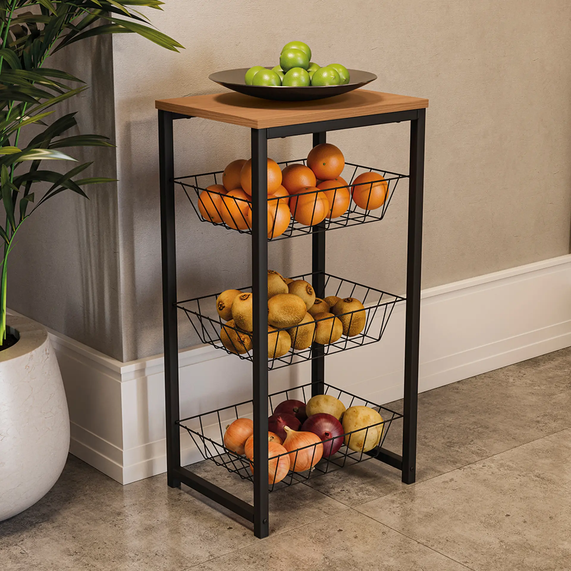 é a escolha perfeita para quem busca aliar funcionalidade, organização e design moderno em um único produto. Compacta e versátil, ela é ideal para manter frutas, legumes e outros itens sempre ao alcance, otimizando o espaço da sua cozinha com muito charme e praticidade.