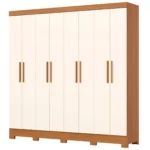 Guarda-Roupa Casal 8 Portas 4 Gavetas B51 Briz Henn Roupeiro – Cinamomo/ Off white