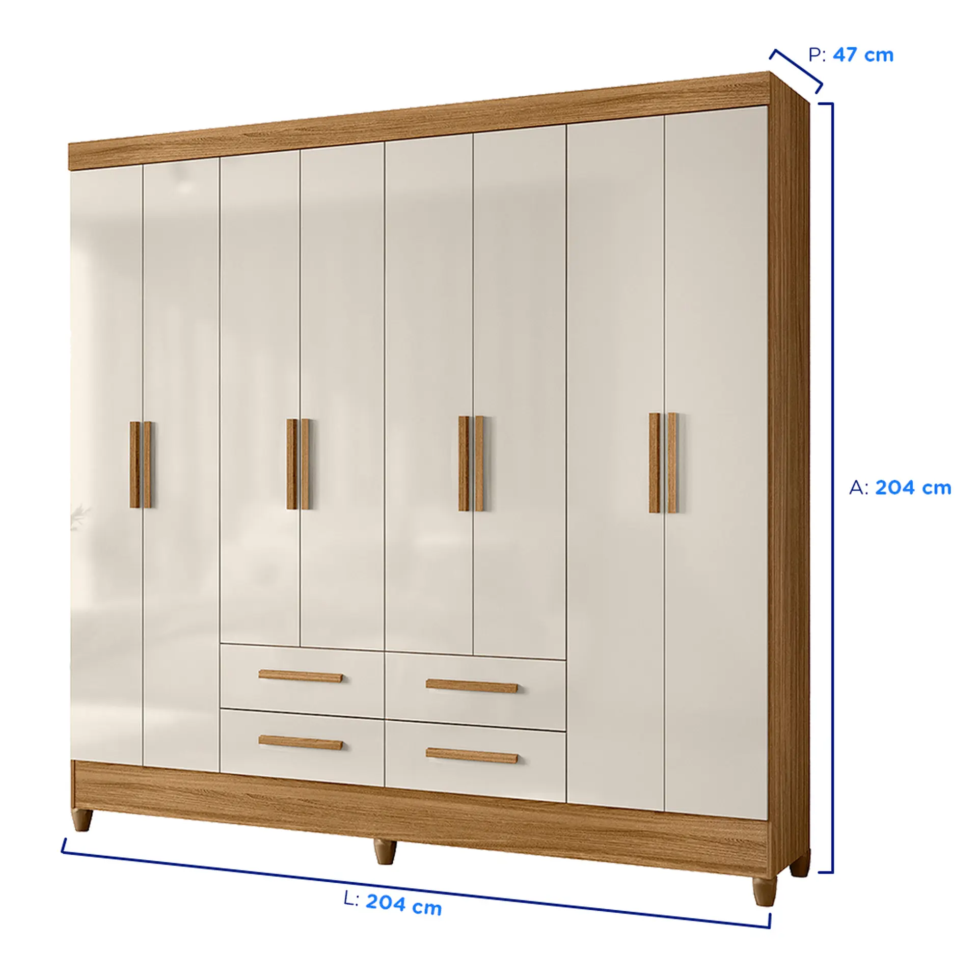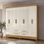 Guarda-Roupa Casal 8 Portas Bater 4 Gavetas Flórida Moval Roupeiro – Freijo/Off White