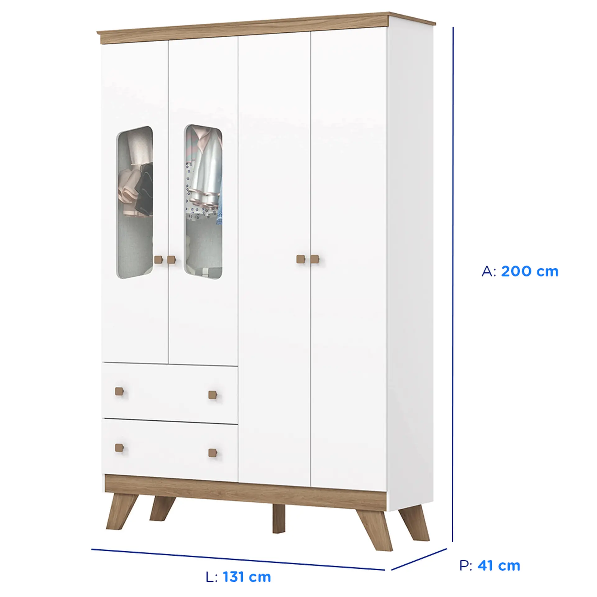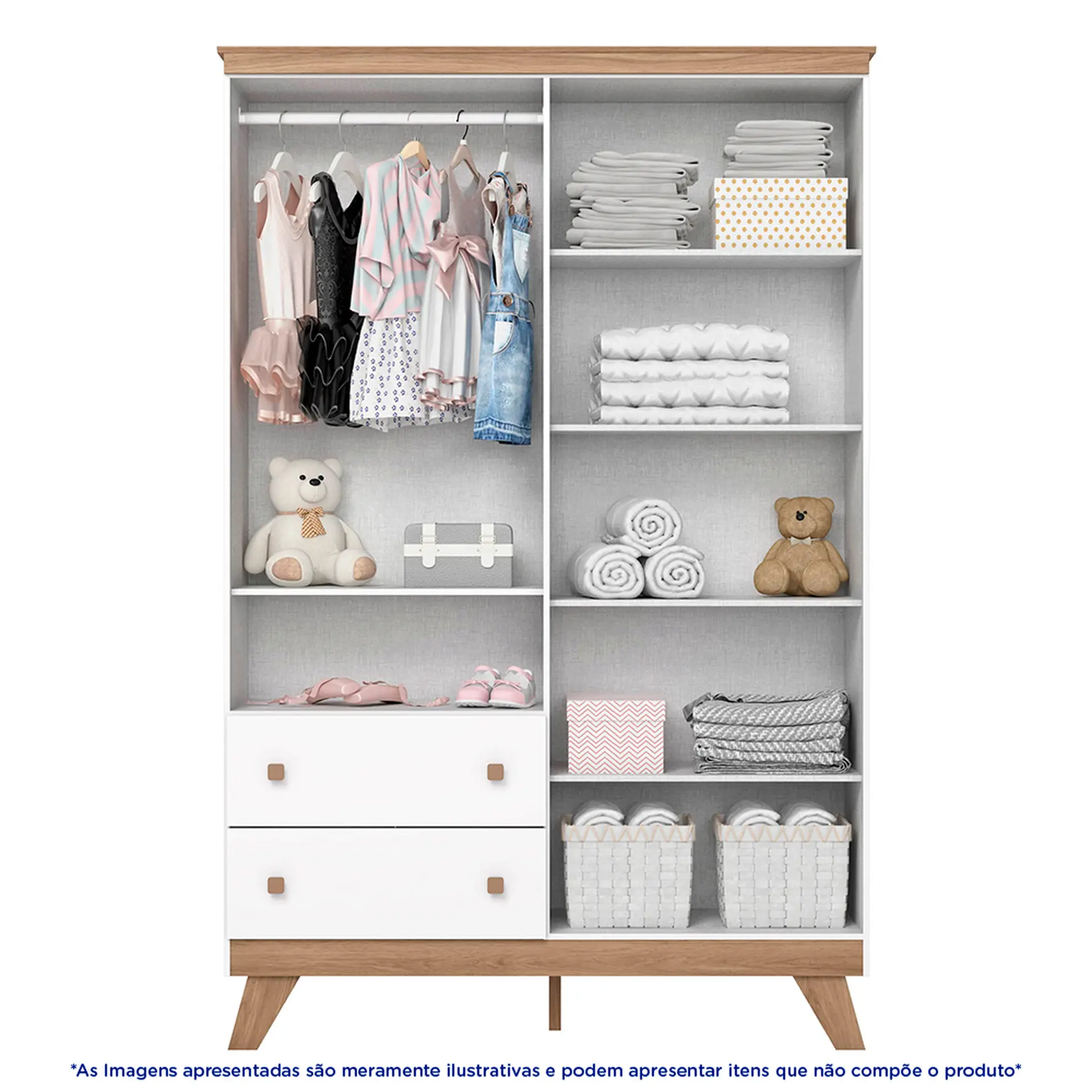 Guarda-Roupa Infantil 4 Portas 2 Gavetas Confete Henn Roupeiro – Branco/Jequitiba HP Cód.