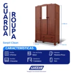 GUARDA-ROUPA SOLTEIRO 3 PORTAS BATER 2 GAVETAS CLEAN SERPIL ROUPEIROEste guarda-Roupa combina um visual clássico com a praticidade que você precisa para o dia a dia. Com três portas de abrir, sendo a central com um espelho, e duas gavetas espaçosas, ele oferece uma excelente organização para suas roupas e acessórios. A estrutura principal em madeira confere um toque de elegância e durabilidade ao móvel. Confira mais detalhes: