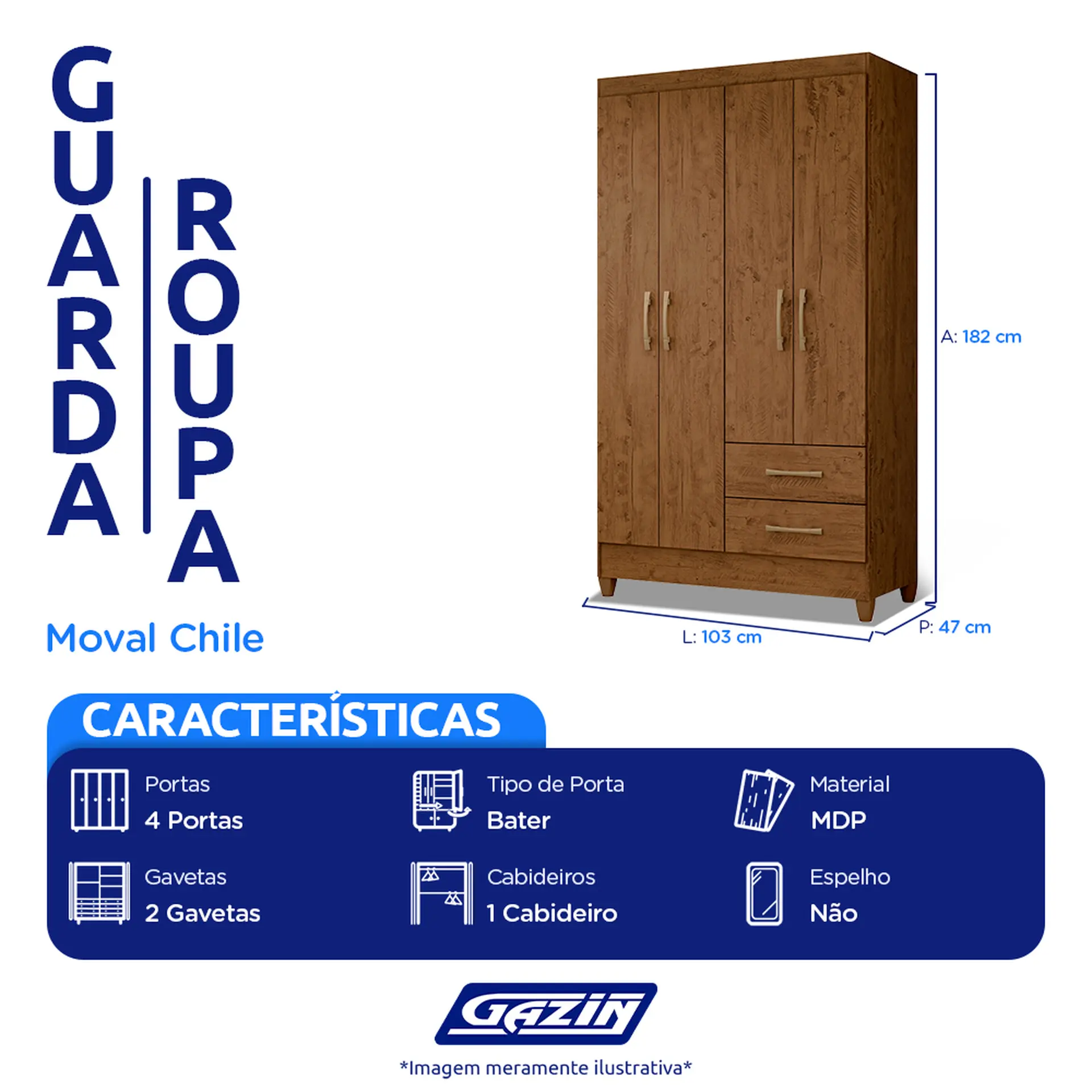 GUARDA-ROUPA SOLTEIRO 4 PORTAS BATER 2 GAVETAS CHILE MOVAL