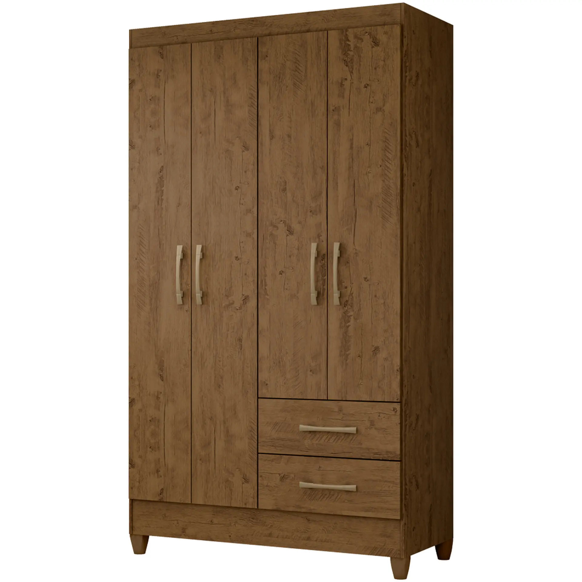 Guarda-Roupa Solteiro 4 Portas Bater 2 Gavetas Chile Moval – Castanho