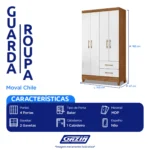 GUARDA-ROUPA SOLTEIRO 4 PORTAS BATER 2 GAVETAS CHILE MOVAL
