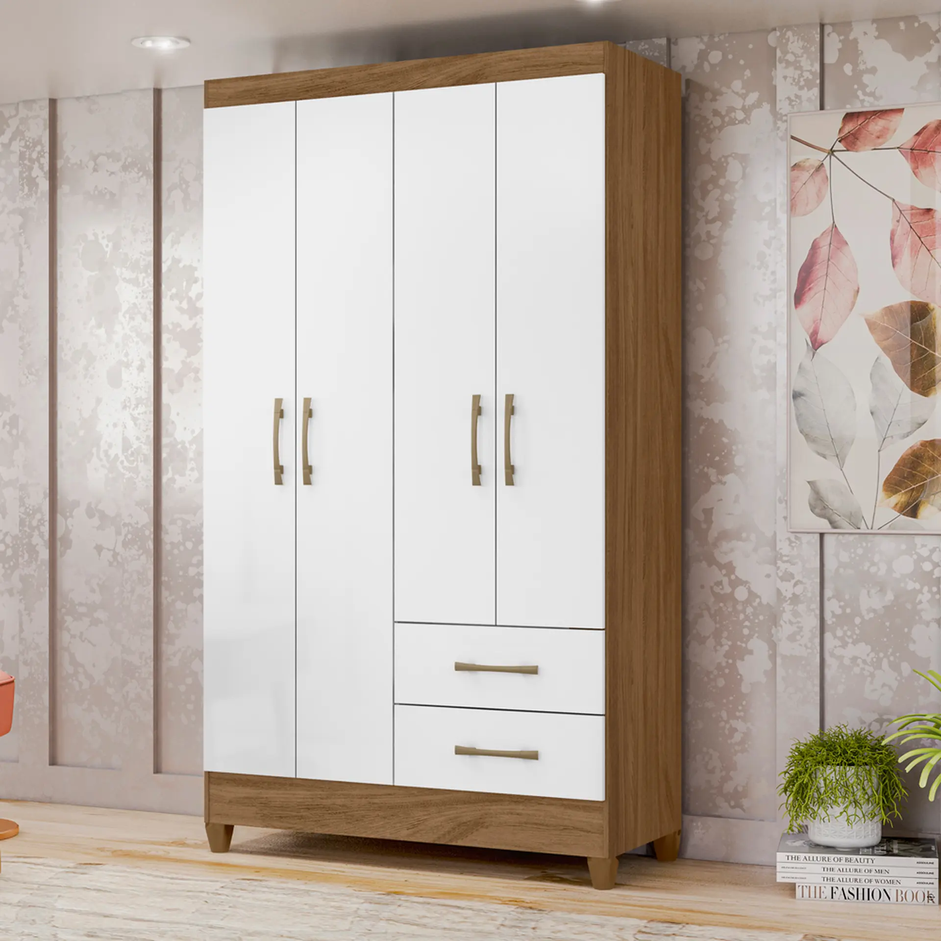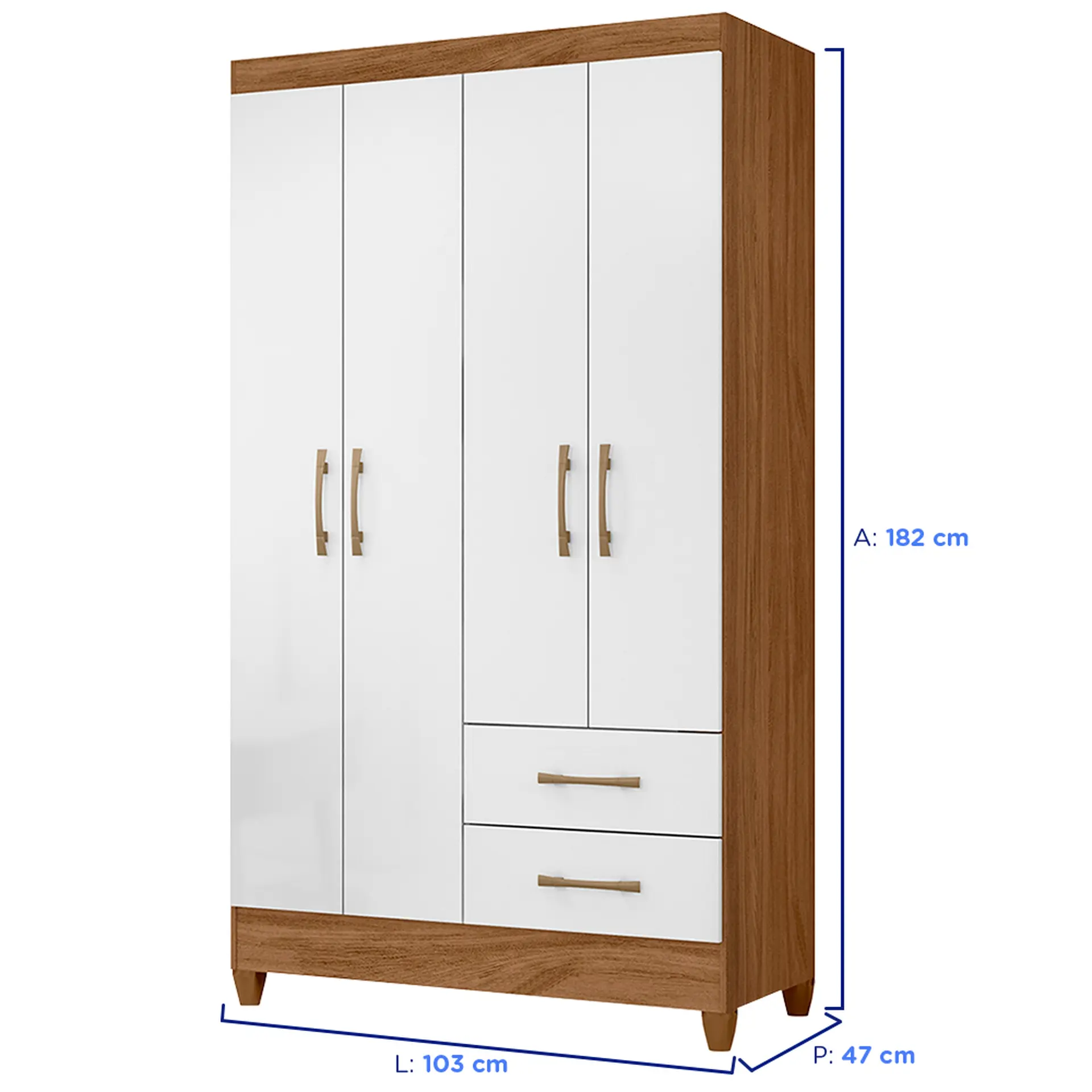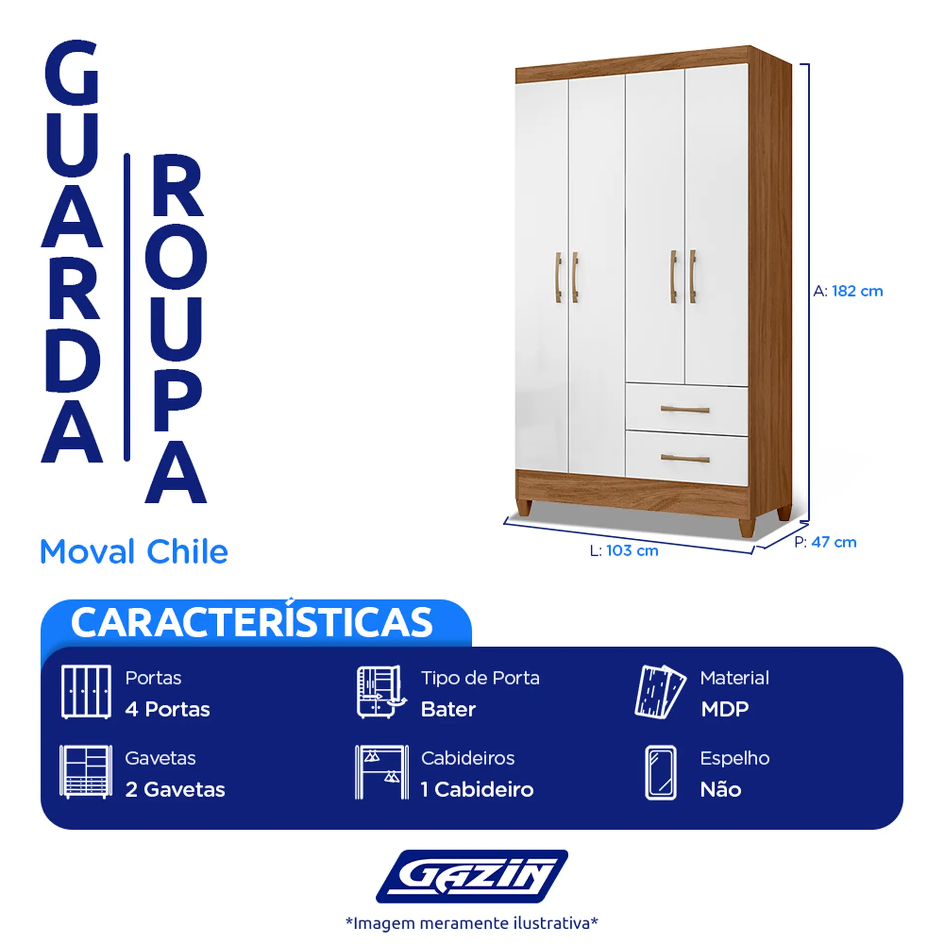 Guarda-Roupa Solteiro 4 Portas Bater 2 Gavetas Chile Moval – Naturale/branco