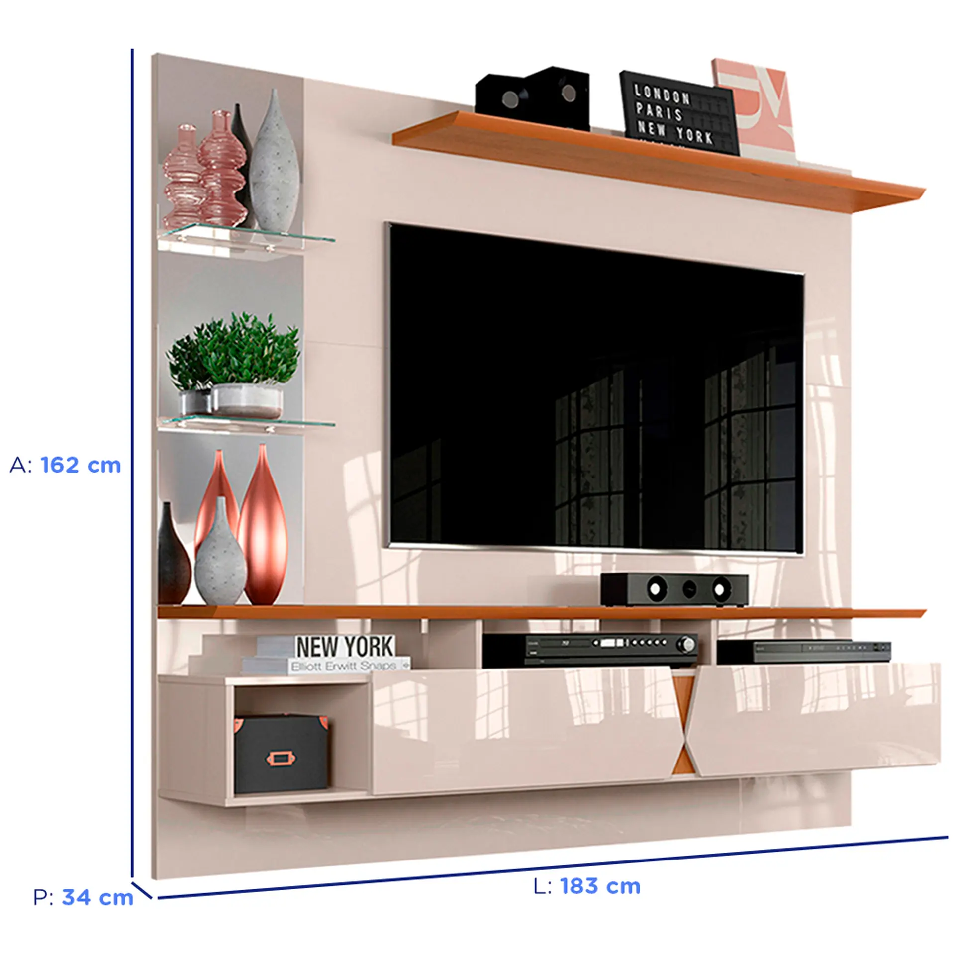 Painel para TV até 55″ com Espelho e Prateleiras Intense Lukaliam – Off White/Damasco
