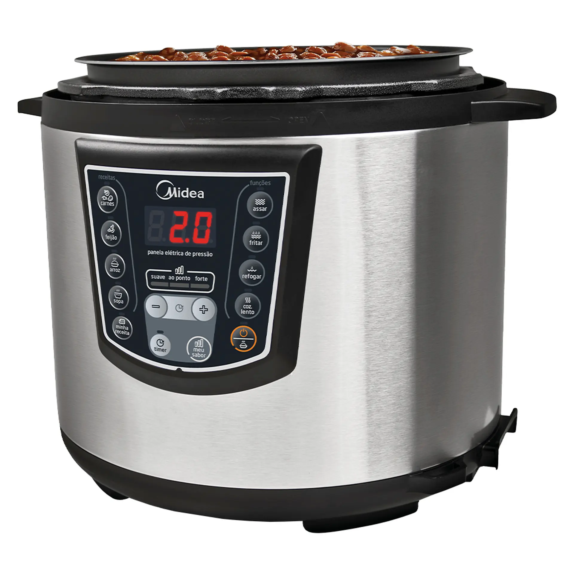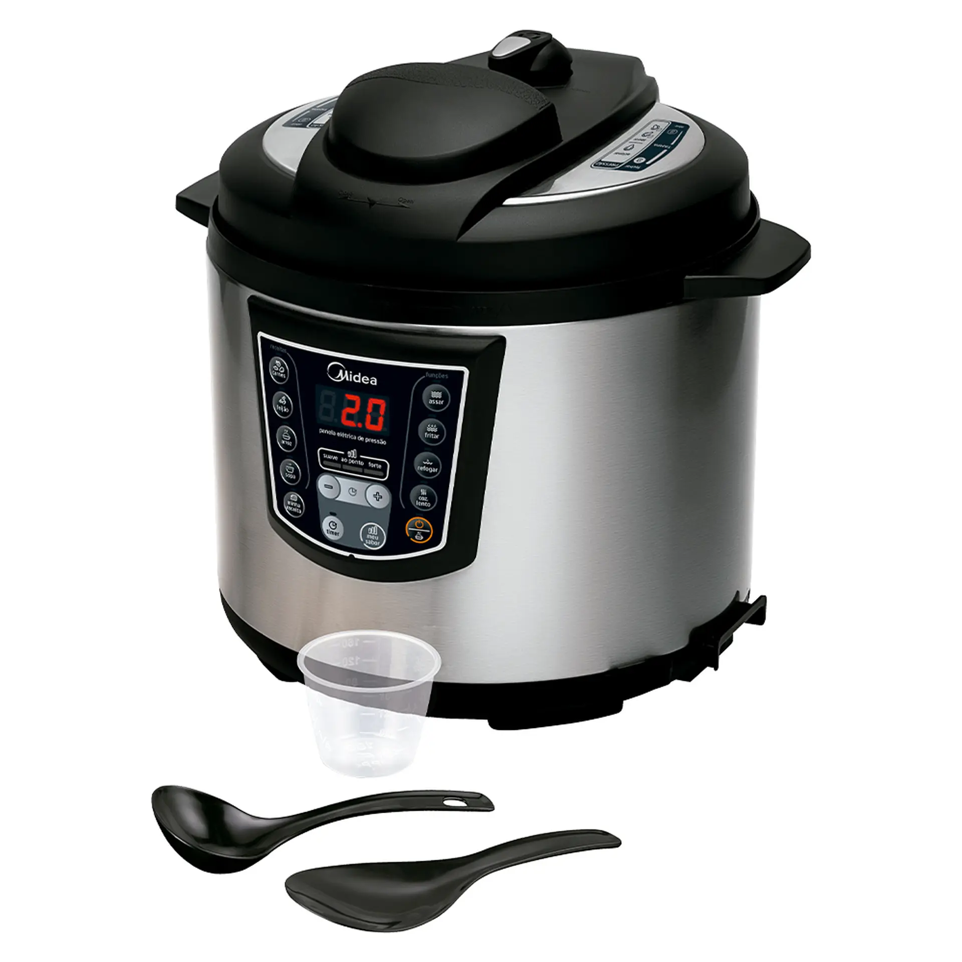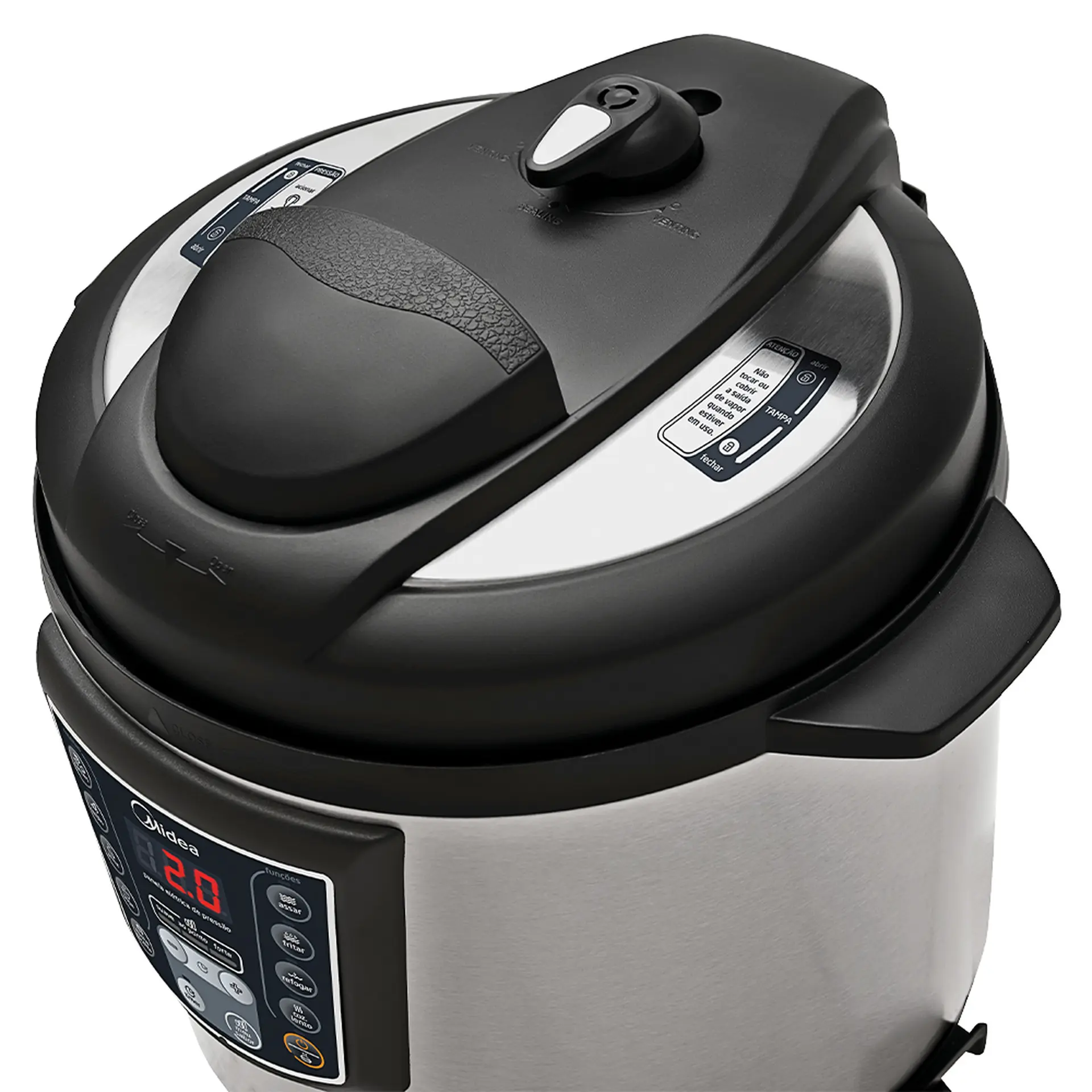 Panela Elétrica de Pressão Midea Liva 6L Timer e Display Digital PPA7 – Inox/Preto – 220 Volts